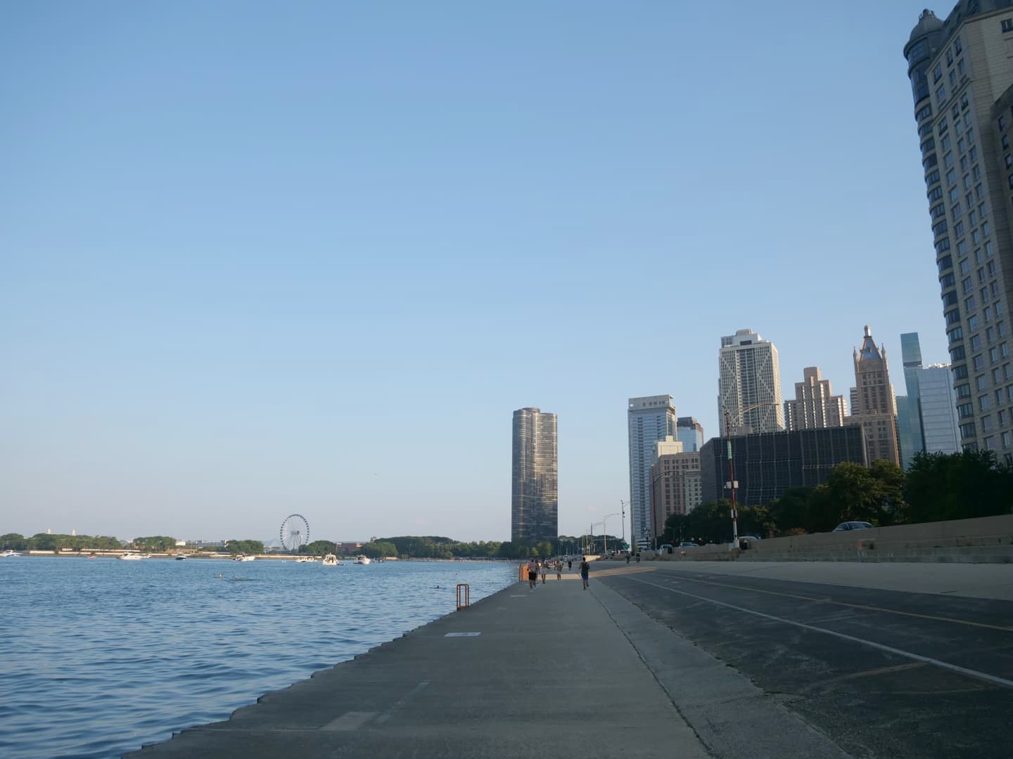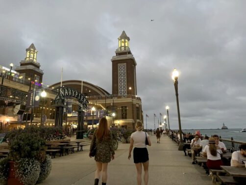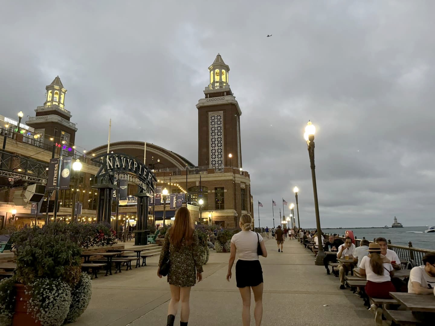 Le Navy Pier est une longue jetée s’avançant sur le Lac Michigan. Il s’agit d’un grand complexe de loisirs, avec des magasins, des restaurants, et même une grande route, la Centennial Wheel, haute de près de 60 mètres.