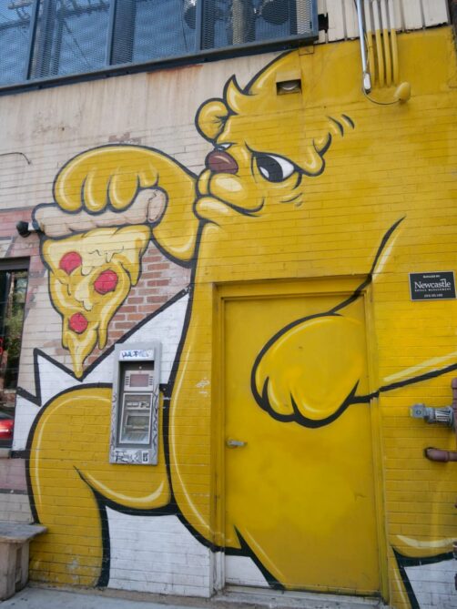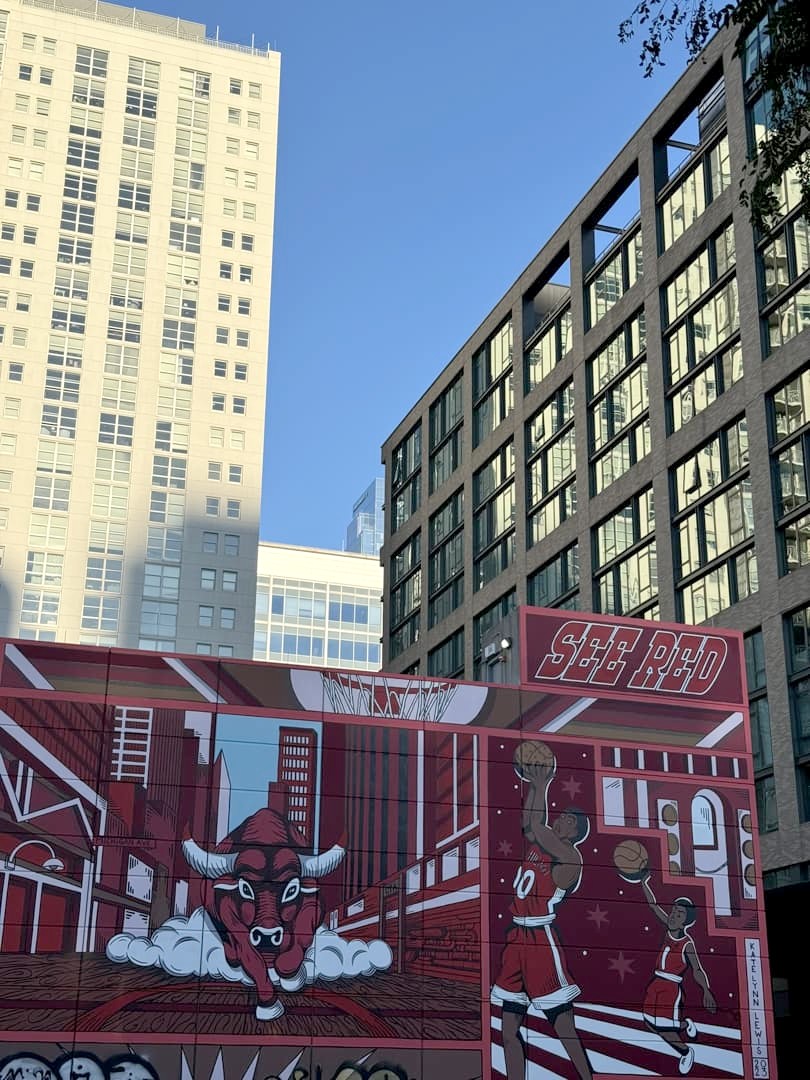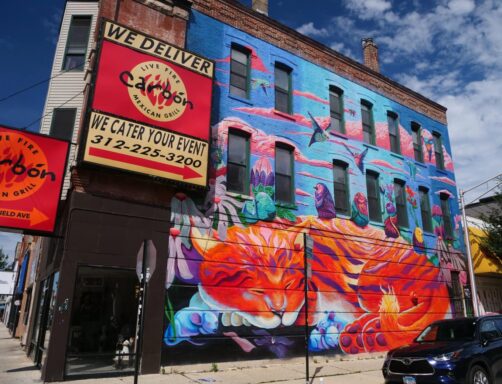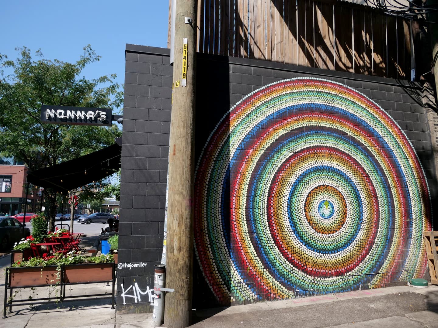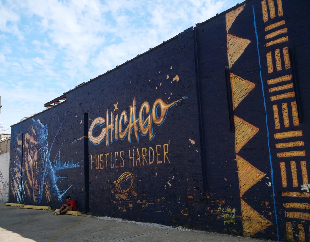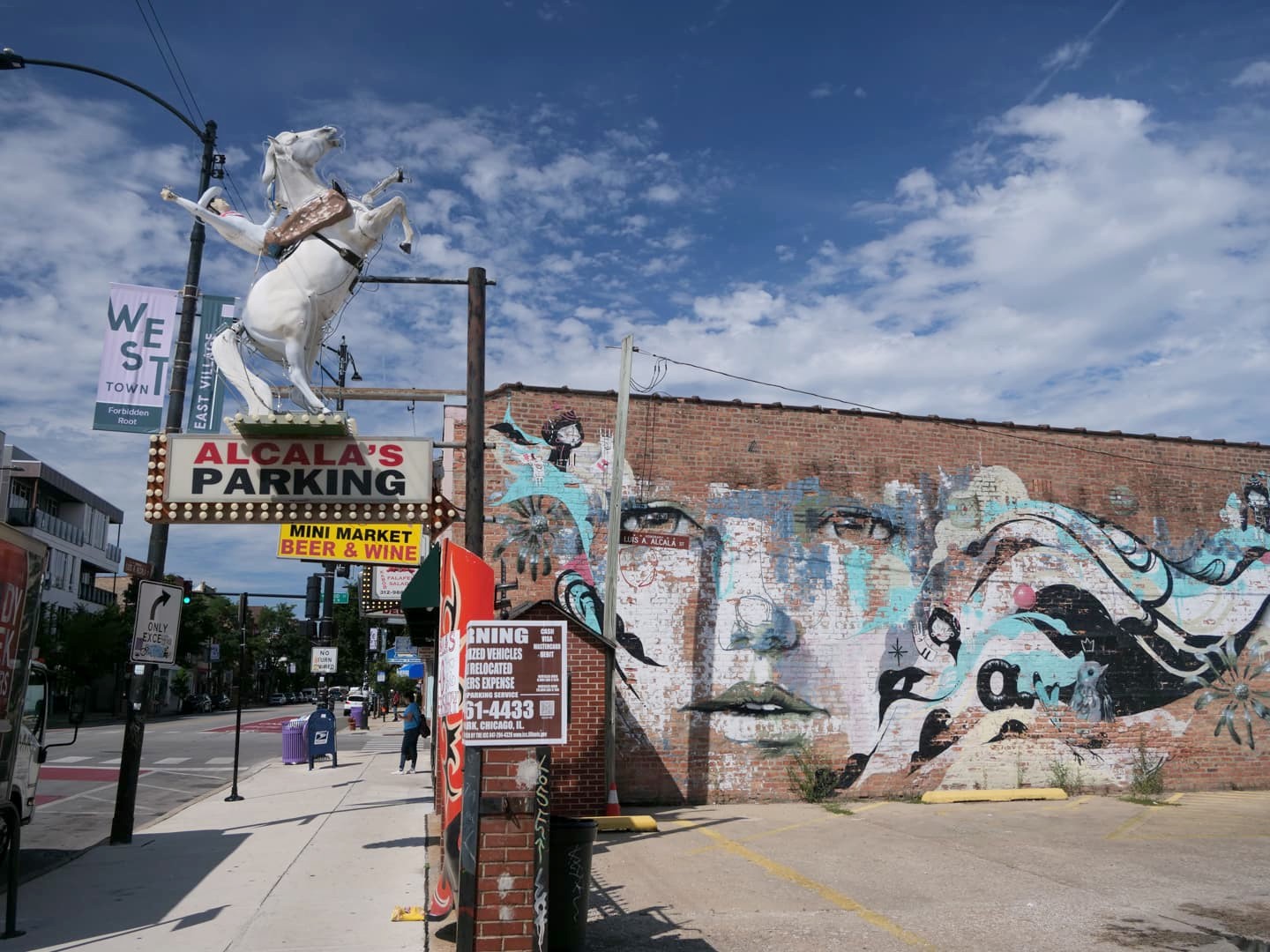 A l’ouest du Loop, le quartier du Fulton Market District est un quartier en pleine transformation, qui est devenu aujourd’hui l’un des plus tendance de Chicago. On y trouve une tonne de restaurants, cafés et bars branchés, en partie installés dans des anciens entrepôts réhabilités. J’y ai testé plusieurs bonnes adresses, à découvrir dans mon article Où manger à Chicago. Il y a aussi pas mal de chouette street art dans ce quartier, notamment les amusantes ailes en forme de pizza situées au 108 N Green Street !