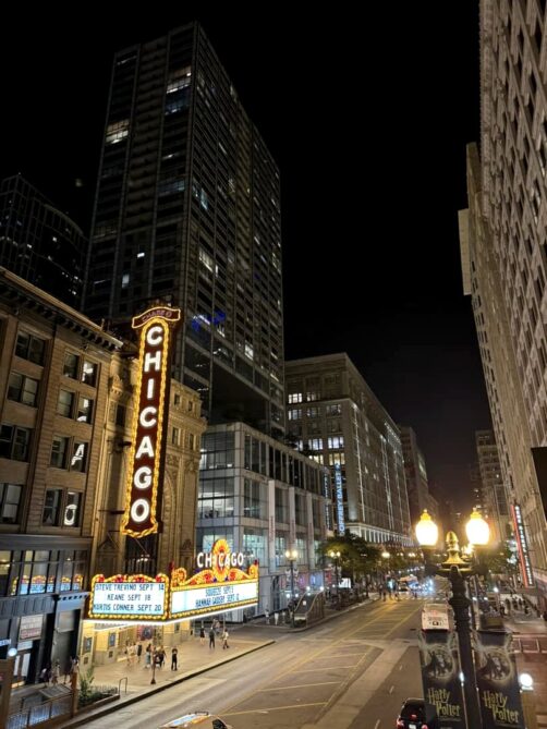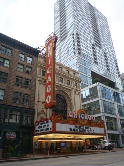 Au nord du Loop, c’est le quartier des théâtres, dont les façades valent aussi un coup d’oeil même si vous ne comptez pas aller voir de spectacle (Goodman Theatre, Ford Center for the Performing Arts Oriental Theatre,…). Le plus connu est le Chicago Theater : sa façade dotée d’un grand néon est l’une des plus photogéniques de Chicago (à voir de jour et de nuit). Des visites guidées de ses splendides intérieurs sont aussi possibles.