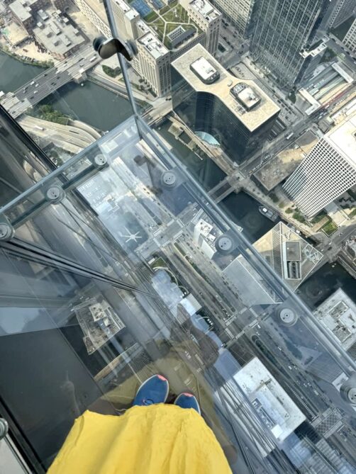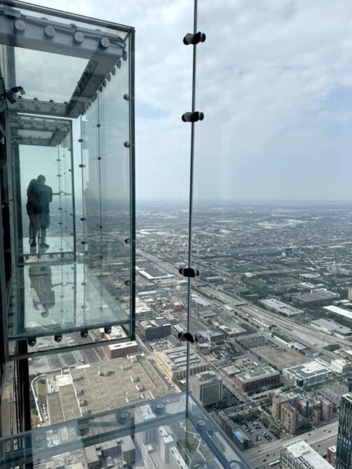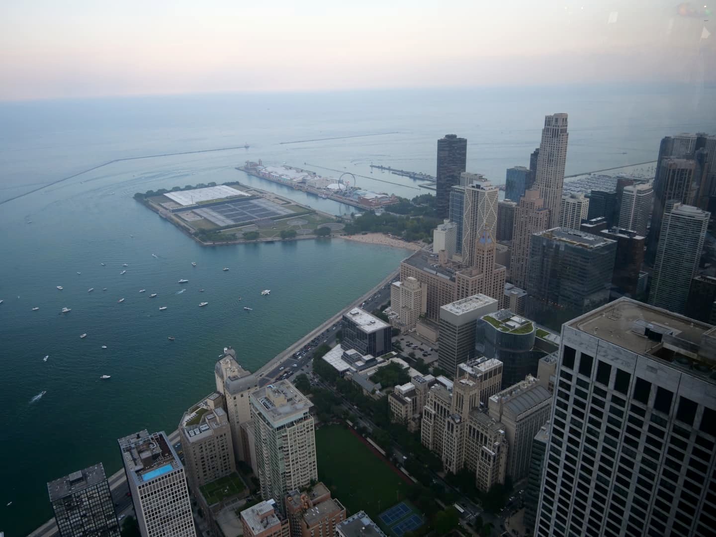Une plateforme d’observation, le Skydeck, se trouve au 103ème étage de la tour et offre de belles vues panoramiques sur la ville. Vous aurez aussi accès à « The Ledge », des box tout en verre qui vous donnent l’impression de marcher dans le vide. Toujours impressionannt (inclus dans l’entrée standard, mais il peut y avoir un peu d’attente). Nous avions réservé un des premiers créneaux de la journée (en semaine), et il y avait très peu de monde.