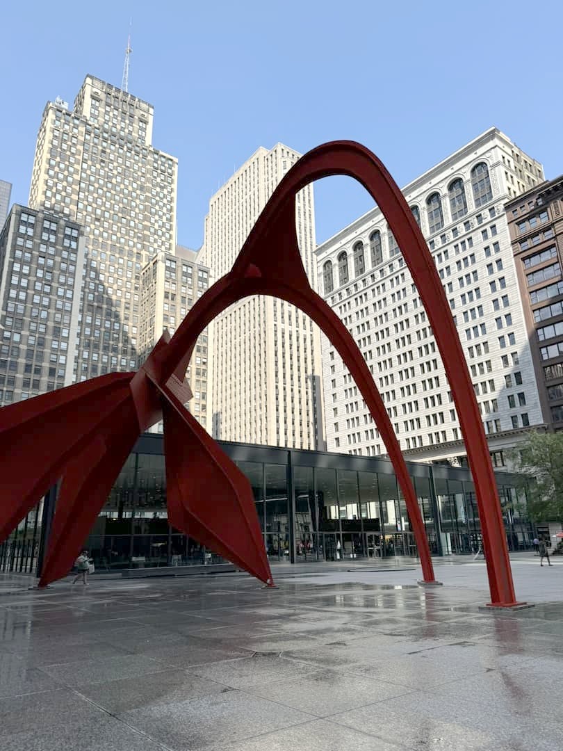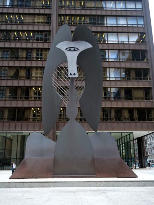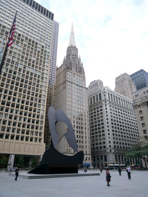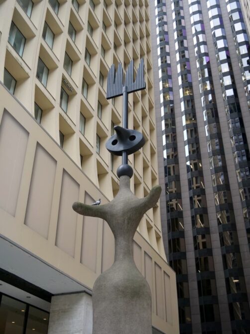En plus des bâtiments, il y a aussi plusieurs sculptures à découvrir durant votre balade : le « Flamingo » de Calder et même des oeuvres de Picasso et Miró !