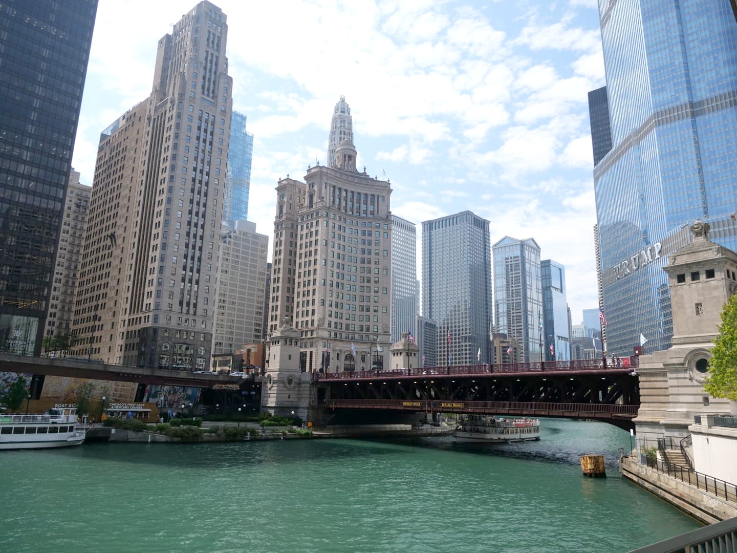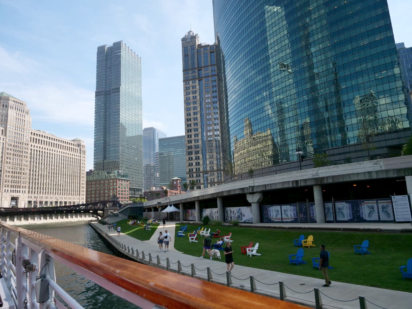 Une autre activité incontournable à Chicago, à faire de préférence lorsqu’il fait beau, c’est la croisière architecturale sur la Chicago River. Celle-ci permet de découvrir le centre de Chicago depuis l’eau, en admirant les plus beaux et/ou intéressants bâtiments de la ville (Tribune Tower, Wrigley Building, Willis Tower, Marina City et ses « corncobs », la St. Regis Tower, etc.) tout en écoutant des commentaires live du guide qui permet d’en apprendre plus sur l’histoire de la ville. A la fin, on a aussi rejoint le Lac Michigan. A faire de préférence lorsqu’il fait beau, c’est très relaxant !