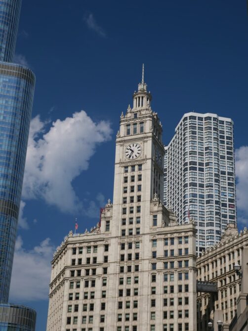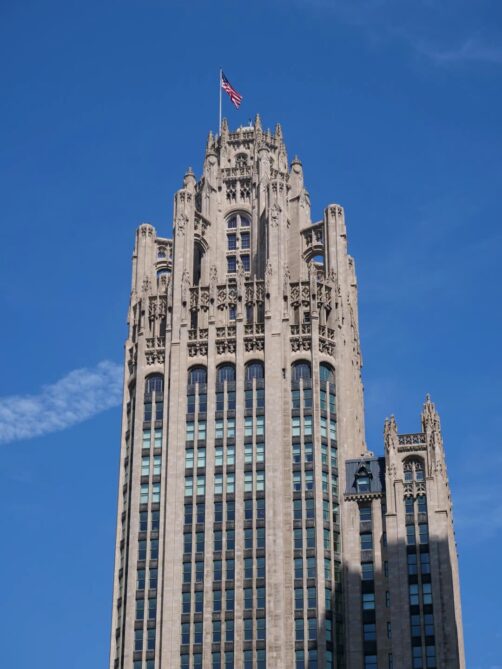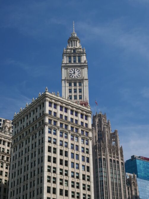 - Tribune Tower & The Wrigley Building : deux joyaux architecturaux situés au sud du Magnificent Mile, près de la Chicago River. La Tribune Tower est un ancien siège de journal avec une particularité assez unique : des fragments de près de 150 monuments historiques sont incrustés dans sa façade (Mur de Berlin, Cathédrale de Chartres, Grande Muraille de Chine, Grande Pyramide de Cheops,…).