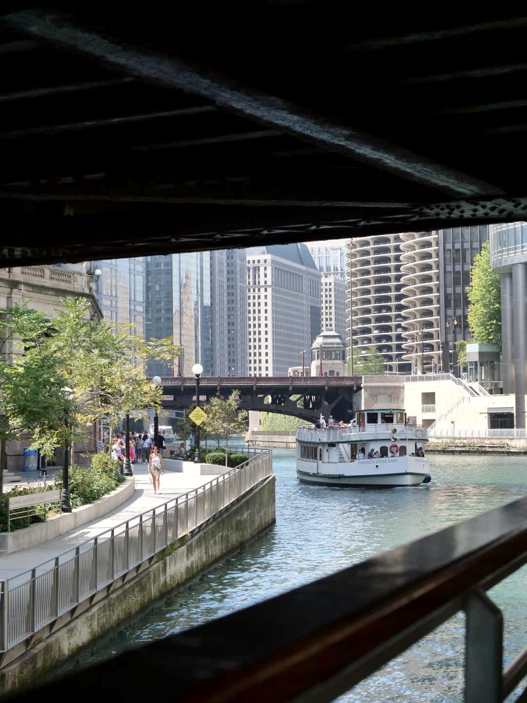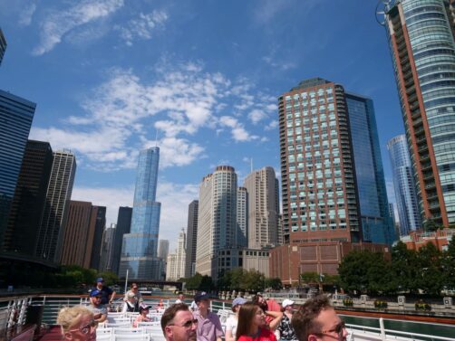 Il existe de nombreuses compagnies qui font toutes plus ou moins le même itinéraire en environ 1h15, et la plupart partent depuis le Riverwalk autour de Michigan Avenue. Nous avons fait celle de Shoreline Sightseeing, qui est celle comprise avec le CityPASS. Vous pouvez aussi la réserver via GetYourGuide (lien vers la même compagnie) si c’est la seule activité payante qui vous intéresse.
