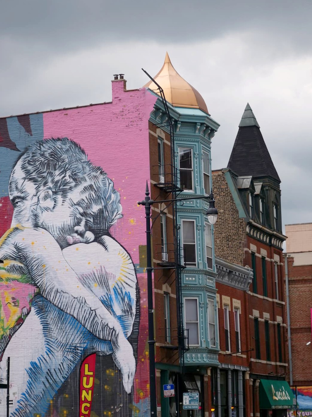 - Wicker Park : un quartier un peu plus chic, connu pour ses belles maisons historiques, notamment celles que l’on peut découvrir le long de la Beer Baron Row (datant de la grande époque des brasseurs à Chicago). Ne manquez pas de faire un petit crochet par le Vivian Maier Mural, hommage de Kobra à la célèbre photographe.