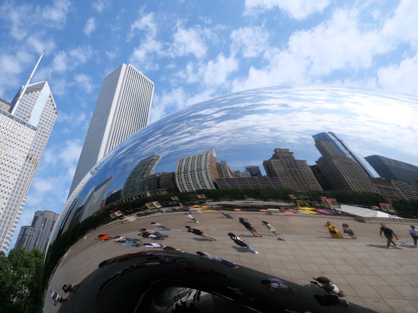Si Millennium Park n’est pas le plus grand parc de Chicago, c’est sans aucun doute l’un des plus agréables. On y trouve notamment l’un des symboles de la ville, le Cloud Gate, plus communément appelée « The Bean » par les locaux, une sculpture miroir particulièrement photogénique car il reflète la skyline (quand il n’y a pas trop de monde, et ça c’est plus compliqué…).