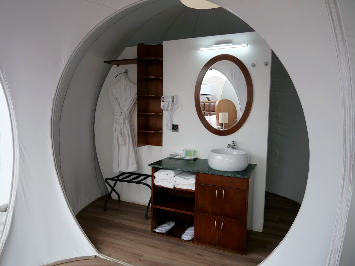 Et si le tarif est assez élevé, il a quand même l’avantage d’inclure la demi-pension, ce qui est très pratique pour éviter de devoir retourner à Gaia le soir. Les repas se prennent dans l’énorme bulle qui sert également d’espace de réception. Celle-ci n’est pas du tout transparente, pour préserver de la chaleur. C’est donc assez particulier puisqu’il y fait assez sombre, mais pas très dérangeant au final.