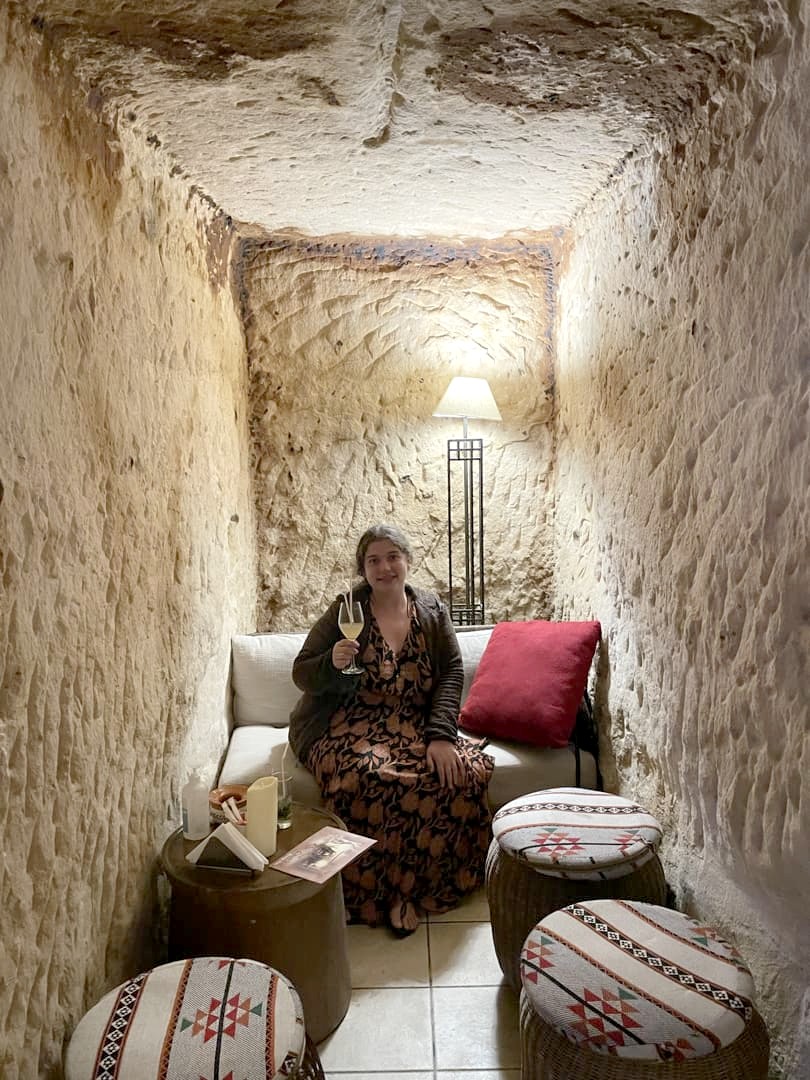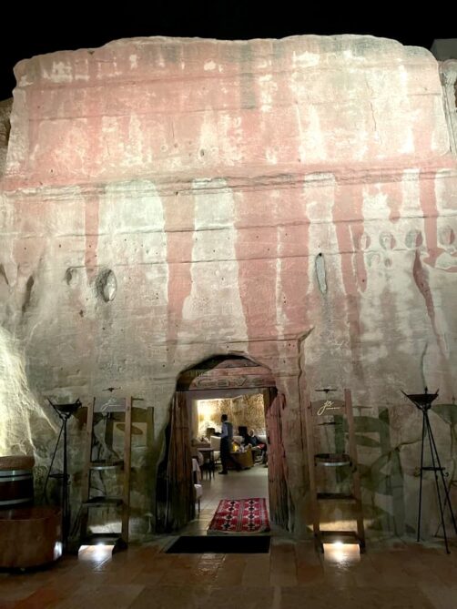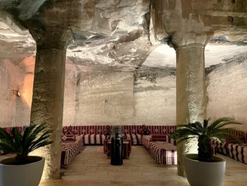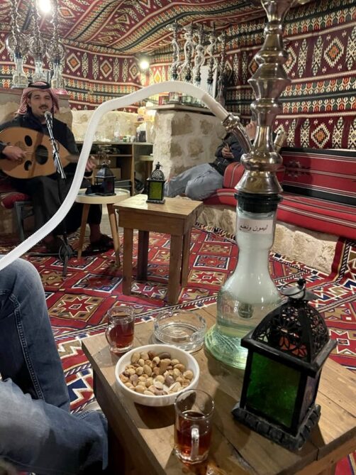 Après avoir pris notre repas du soir et profité un peu de notre superbe logement au Petra Bubble Luxotel, notre plan initial était de faire nos premiers pas à Petra le soir pour assister au spectacle de sons et lumières Petra by Night. Malheureusement, comme expliqué plus haut, celui-ci a finalement été annulé à cause de la météo. Comme nous avions tout de même été sur place pour confirmer si le spectacle allait se faire ou non, nous nous sommes finalement rabattus sur une autre expérience assez insolite à faire à l’entrée de Petra : le Cave Bar. Ce bar unique de style nabatéen est une expérience en soit, et aussi l’un des rares endroits qui sert de l’alcool (même si je vous conseille d’éviter les cocktails, qu’ils ne savent pas du tout doser). Une soirée tout de même très sympathique, au final !