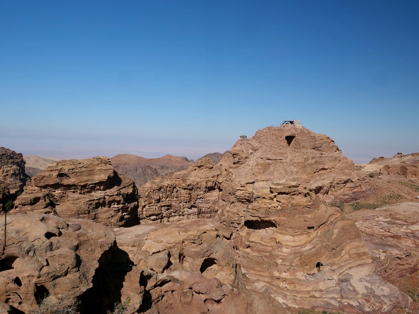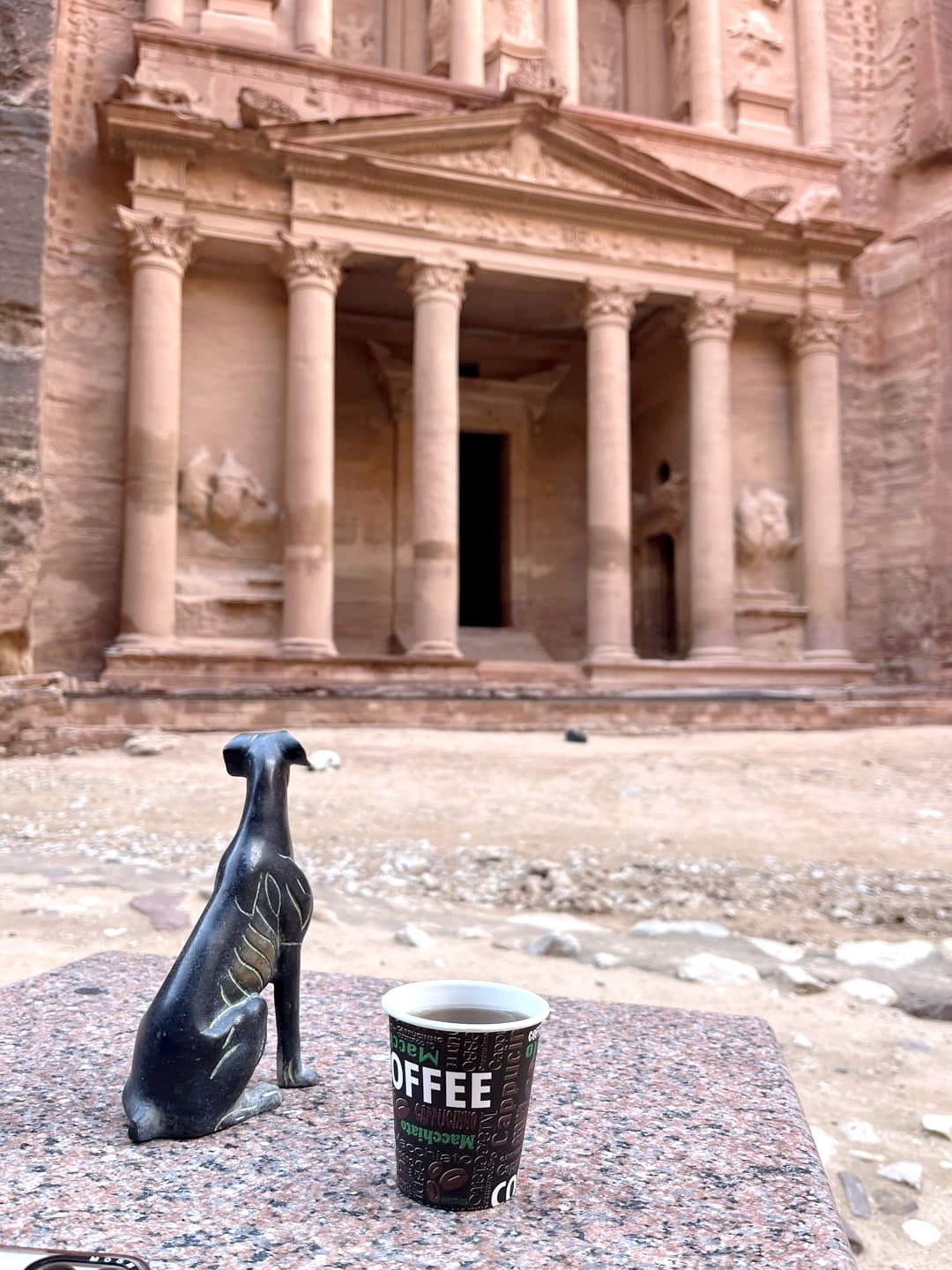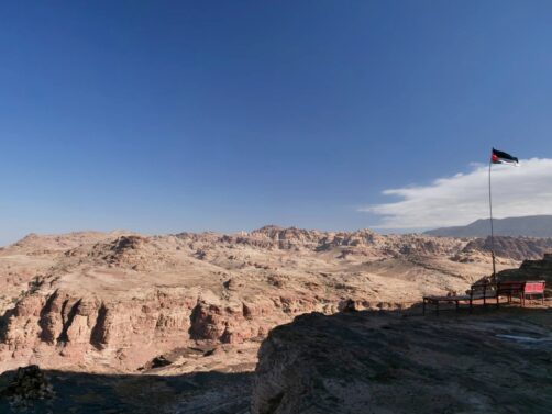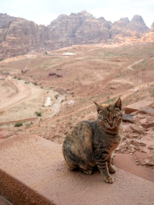 Le Monastère est la chose principale à voir dans cette partie supérieure de Petra, mais il y a deux points de vue en hauteur qui offrent une vue panoramique avec le Monastère en contre-bas. Ici, c’était « ouvert », même si les petits cafés qui y sont normalement installés étaient fermés (je ne sais pas si c’était lié également au mêmes « conflits » avec les bédouins). nous avons été au point de vue le plus à gauche quand vous avez le Monastère dans le dos et la vue était sublime (d’autant plus que son petit gardien chat était trop mignon !).