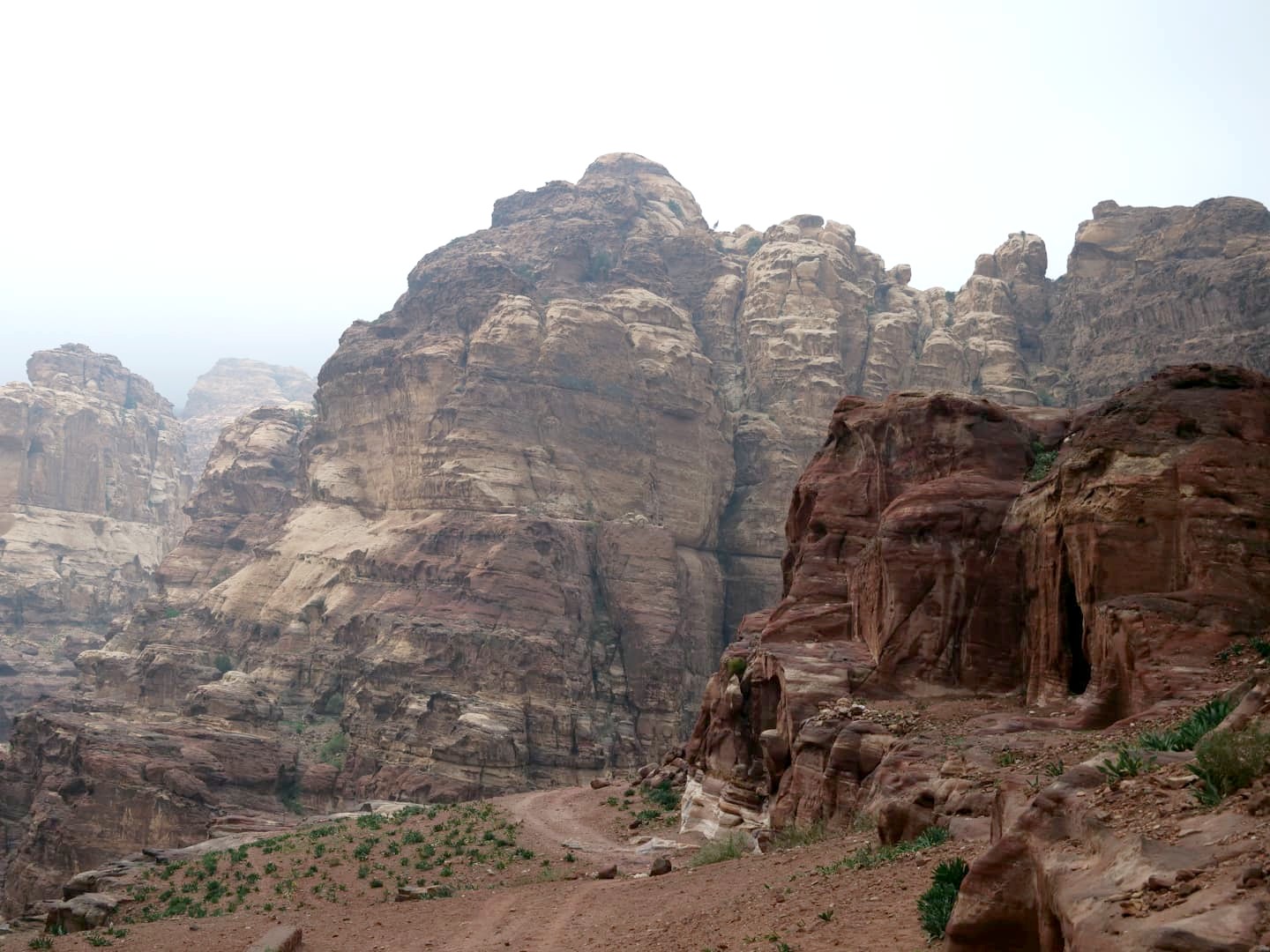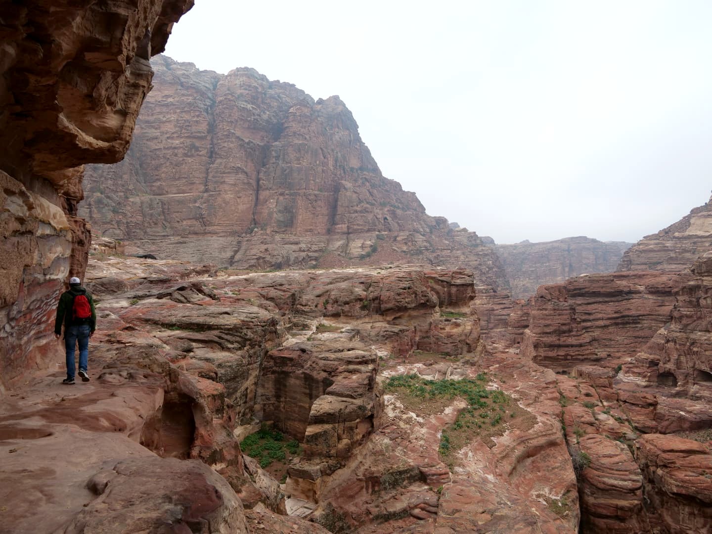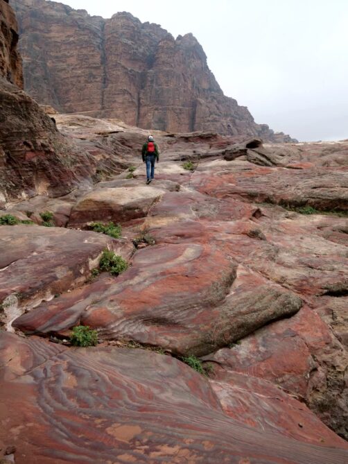 Après 15-20 minutes de navette, on commence la randonnée jusqu’au Monastère, qui se trouve à l’autre extrémité de Petra par rapport au Trésor. Ca monte quand même bien sur la première partie, mais le chemin est facile. Heureusement qu’il faisait frais ce jour-là, car avec la chaleur ça aurait probablement été un peu plus difficile. On a vite semé le reste des gens de la navette pour se retrouver à nouveau seuls au monde dans ces paysages incroyables !
