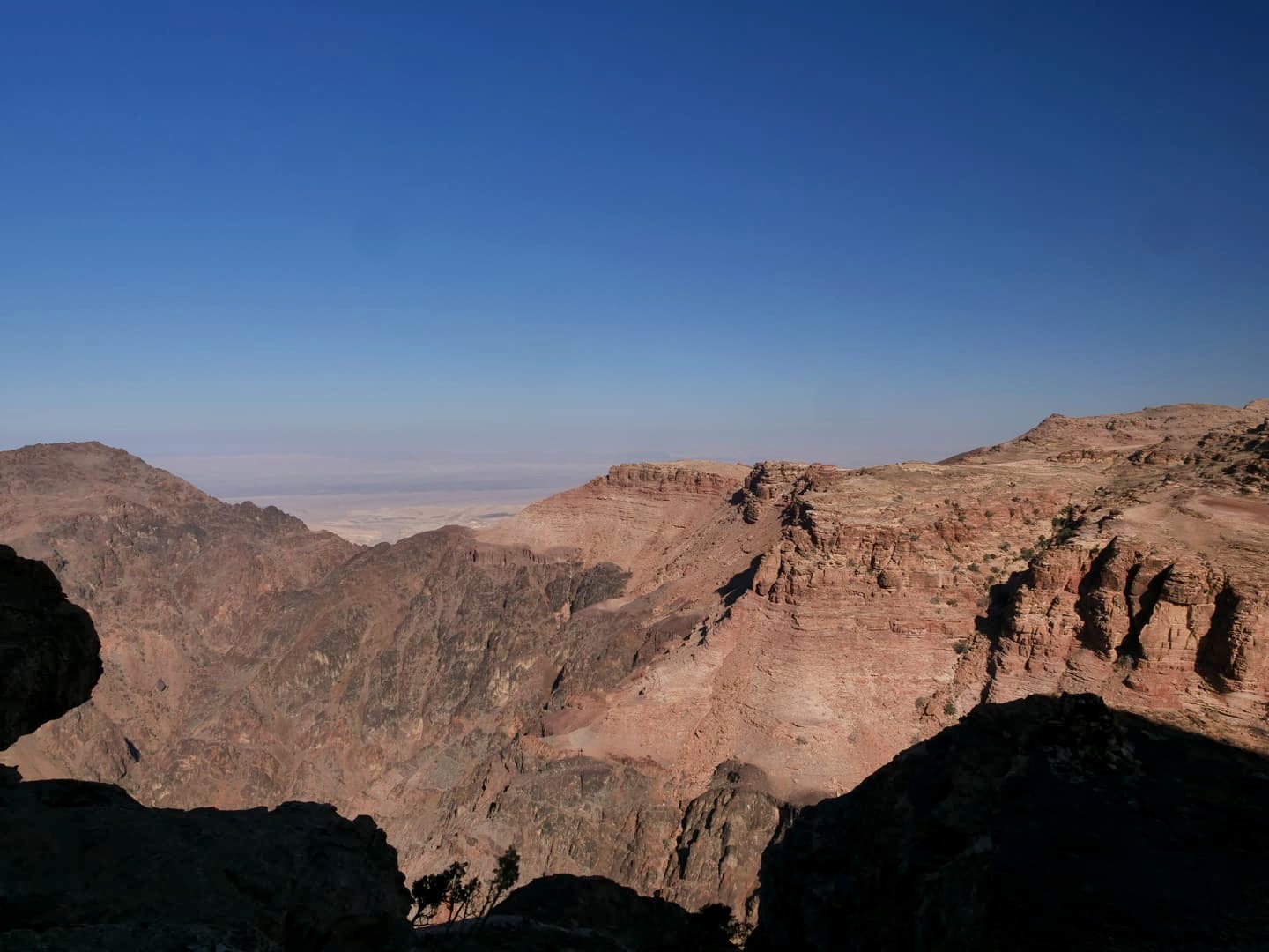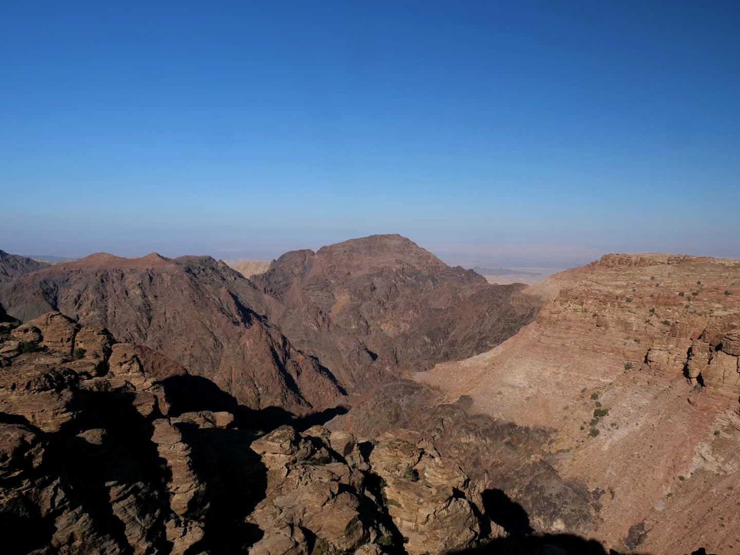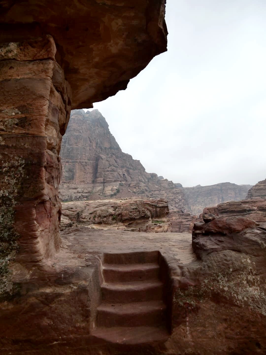 Après 15-20 minutes de navette, on commence la randonnée jusqu’au Monastère, qui se trouve à l’autre extrémité de Petra par rapport au Trésor. Ca monte quand même bien sur la première partie, mais le chemin est facile. Heureusement qu’il faisait frais ce jour-là, car avec la chaleur ça aurait probablement été un peu plus difficile. On a vite semé le reste des gens de la navette pour se retrouver à nouveau seuls au monde dans ces paysages incroyables !