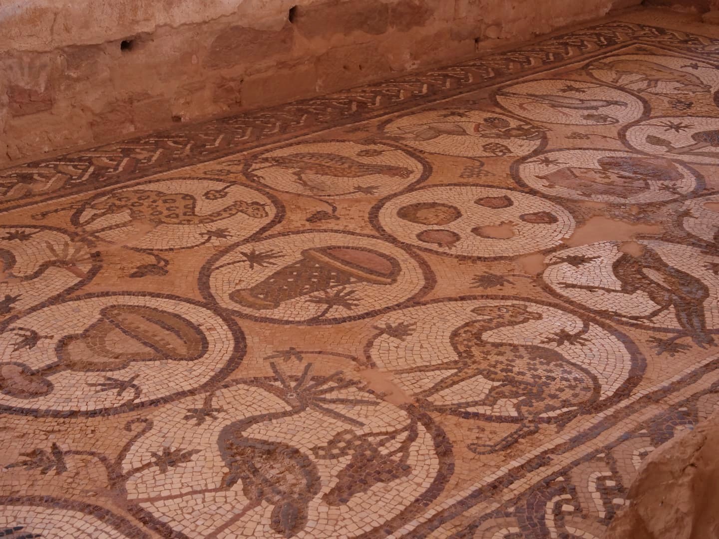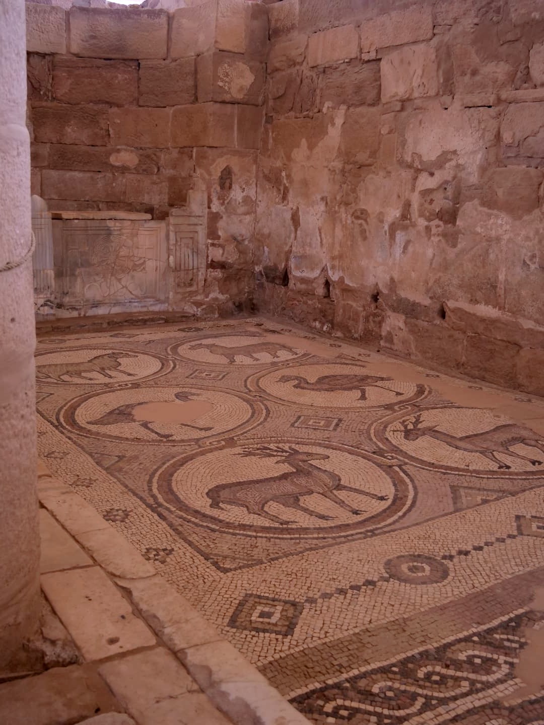 - les ruines de l’Eglise byzantine et ses splendides mosaïques très bien conservées (elles datent probablement de la fin du 5ème siècle/6ème siècle de notre ère).