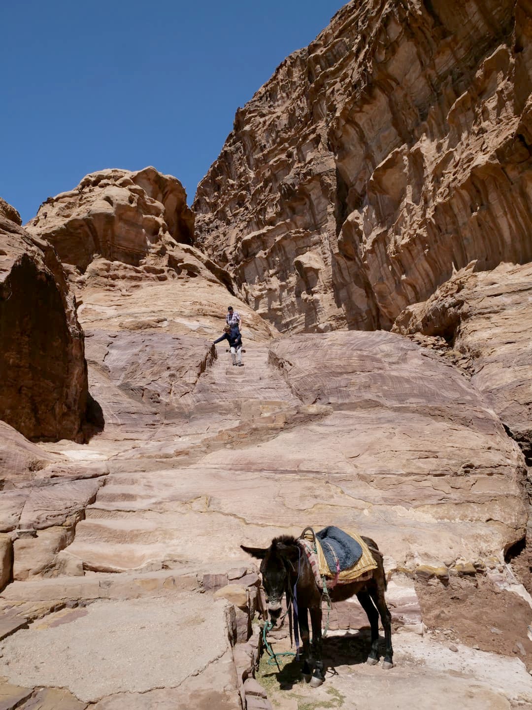 Nous sommes ensuite redescendus par les escaliers qui y mènent lorsque l’on ne passe pas par la Back Door. Nous avons vu de pauvres ânes faire la navette, mais à nouveau ils semblent en bien mauvaise condition. S’il vous plait, évitez d’exploiter les animaux pour ce genre de choses !