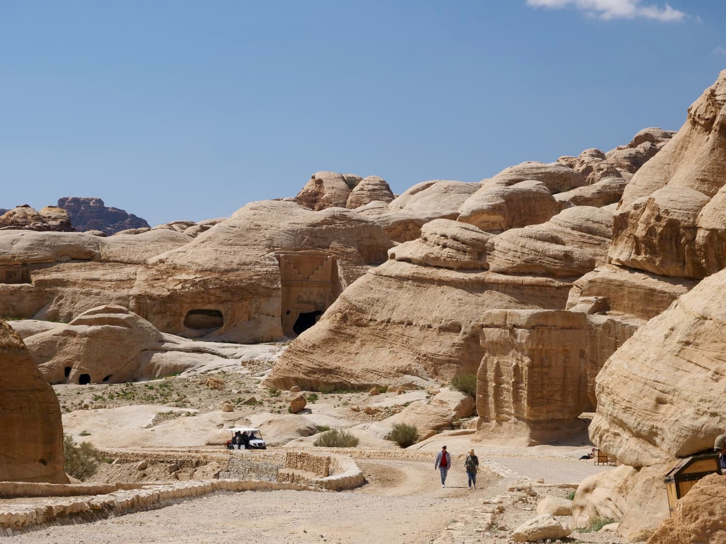 En pratique, que vous choisissiez de tout faire à pied ou pas, vous devez vous organiser pour votre transport (car on ne fait en général pas l’aller-retour). Le plus simple est de vous garer le matin au parking de Petra, puis de prendre soit la navette publique, soit un taxi vers le site de Little Petra. Une fois sur place, une longue montée de plusieurs heures vous attend jusqu’au Monastère ou alors – comme l’essentiel des touristes choisissent de le faire (d’autant plus avec la chaleur qu’il y fait généralement) – vous pouvez opter pour la sorte de camion ouvert 4×4 qui fait la navette entre Little Petra et le « sommet » de la montagne. Il y aura encore quelques montées et descentes à faire à pied, mais ça réduit énormément la difficulté (et le temps) pour rejoindre le Monastère.