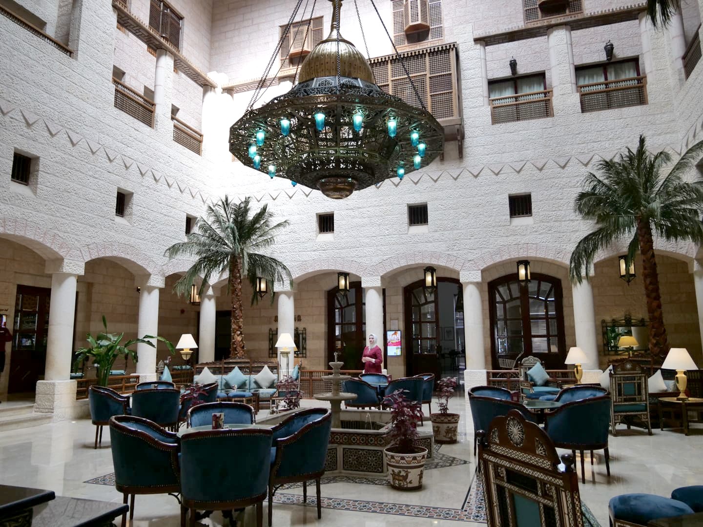 Si vous êtes à la recherche d’une adresse de charme, vos meilleures options seront donc généralement un peu plus excentrées, à part quelques exceptions, notamment le Mövenpick Resort Petra, option la plus haut de gamme au cœur de la ville, situé juste en face de l’entrée du site (et du parking). Nous y avons fait un petit tour et les intérieurs sont splendides. Juste à côté de cet hôtel, nous avions aussi hésité pas mal à loger dans l’un des hôtels les plus récents, le Petra Moon Luxury Hotel, moins cher et dont l’atout est sa piscine avec vue sur les montagnes entourant Petra.