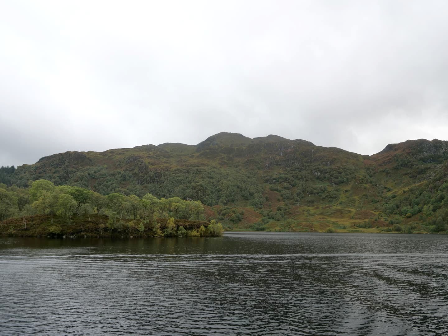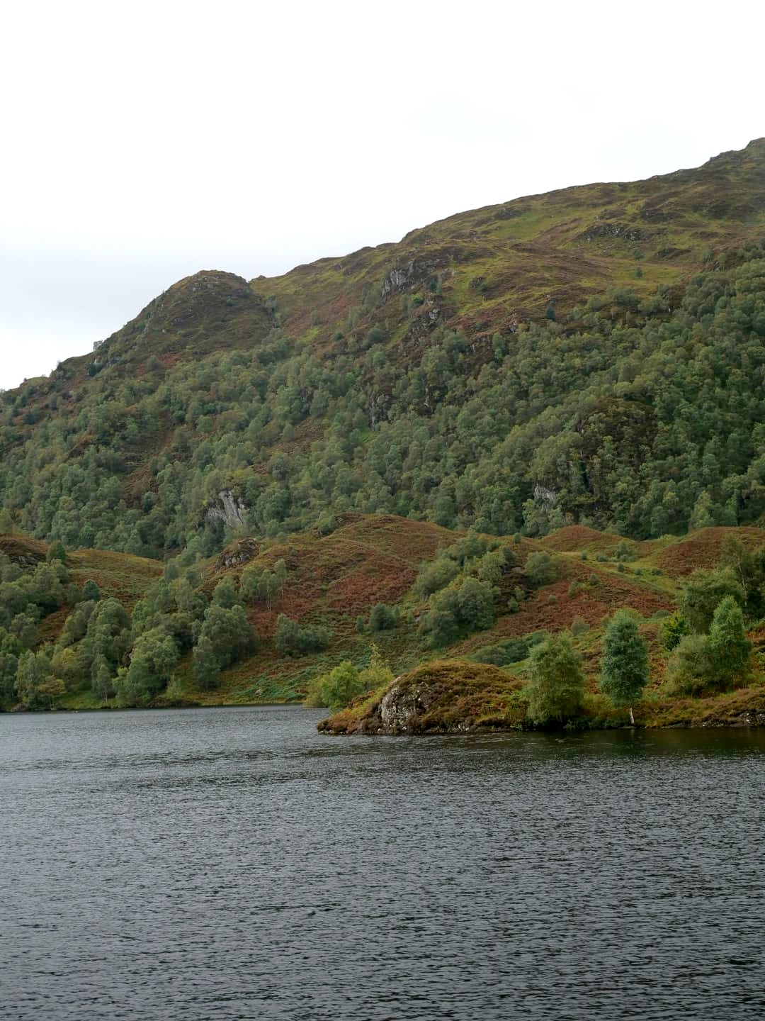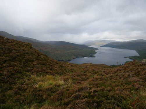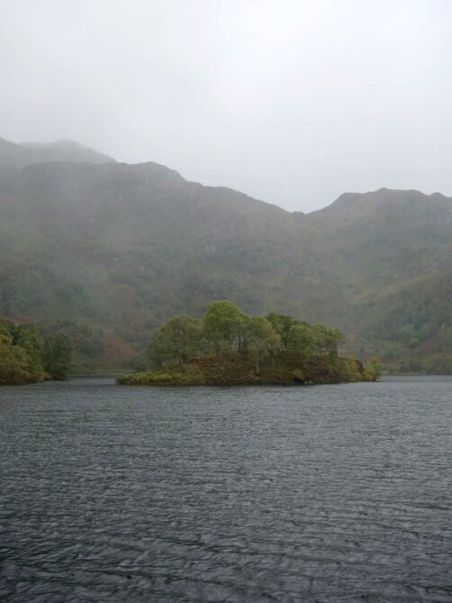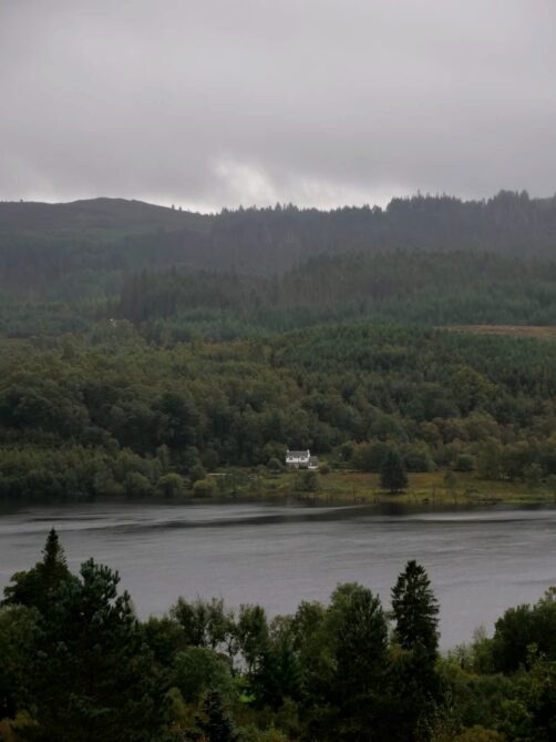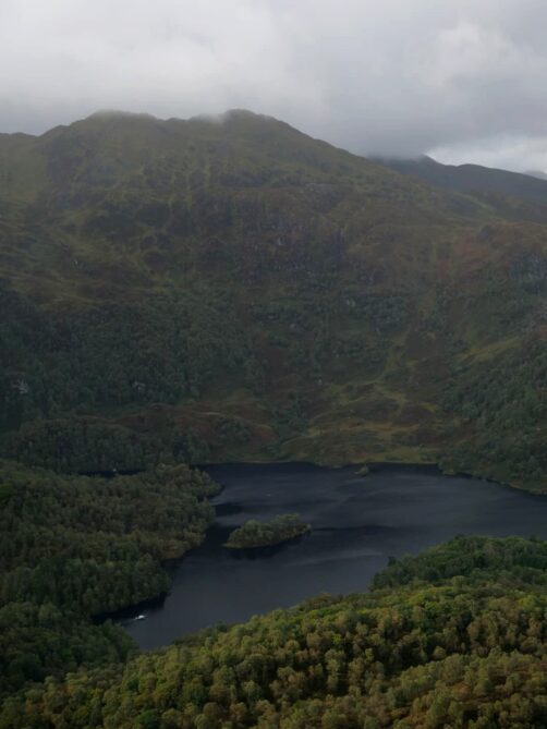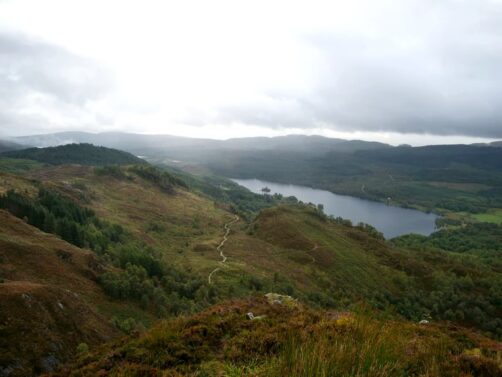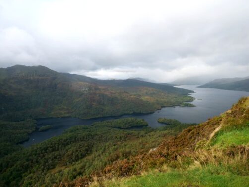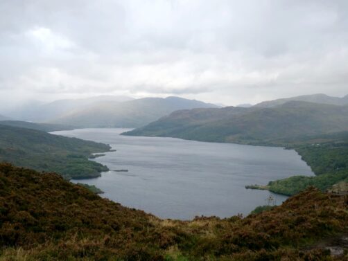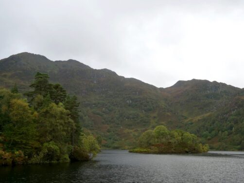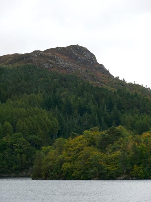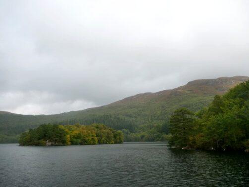 Depuis le sommet du Ben A’an, nous avions une vue panoramique sur le magnifique Loch Katrine situé juste en contrebas, qui était notre seconde destination dans le parc. Bien moins fréquenté que le Loch Lomond (il faut dire qu’il faut emprunter une route en cul-de-sac pour y accéder), ce loch paisible mérite pourtant largement le détour ! Nous l’avons trouvé encore plus agréable que le Loch Lomond.