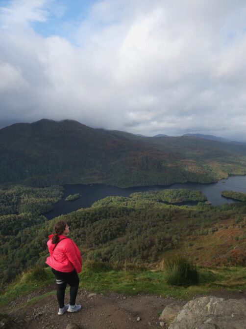 Après une première nuit à proximité (voir mes adresses hébergement en fin d’article), nous avons commencé notre découverte de ce parc avec l’un de ses grands incontournables : la randonnée vers le sommet du Ben A’an, réputée comme l’une des plus belles d’Ecosse. Cette randonnée est populaire pour une bonne raison : il s’agit d’un des sommets écossais les plus faciles d’accès. Comptez seulement un peu plus de 340 mètres de dénivelé depuis le parking (payant), avec pourtant des vues on ne peut plus scéniques et pittoresques depuis son sommet bien dégagé !