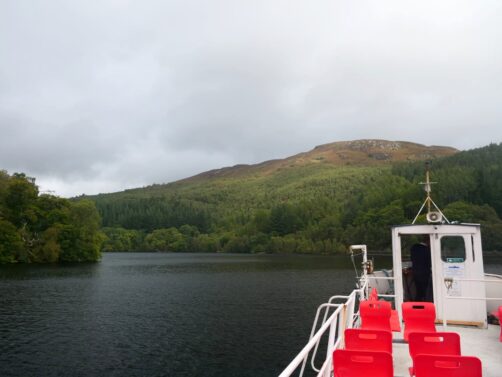 Si des sentiers de randonnées longent le Loch Katrine, la manière la plus confortable et scénique de l’explorer, c’est d’y faire une petite croisière. Vous avez le choix entre une petite boucle de 45 minutes environ, et un grand tour du lac de 2 heures. C’est uniquement sur l’itinéraire long que navige le Steamship Sir Walter Scott, un bateau à vapeur historique. Hors saison, ces tours ne sont pas organisés tous les jours. Nous avons malheureusement du nous contenter du petit tour, mais si vous en avez l’occasion, je vous recommande fortement de choisir le grand tour pour voir une plus grande partie du lac et pour profiter d’un cadre plus historique.