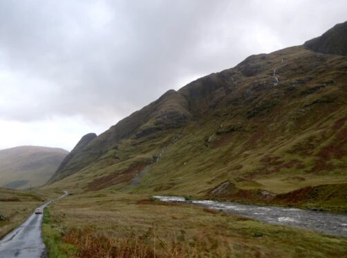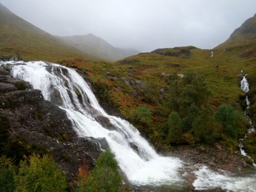 Proche de Glencoe se trouve un autre lieu très scénique, les Three Sisters of Glencoe, trois sommets montagneux voisins qui sont l’un des symboles de la région. A proximité, vous trouverez également le « Meeting of the Three Waters », l’endroit où trois cours d’eau se rassemblent, formant de petites chutes d’eau… ainsi qu’une piscine naturelle, où il est apparemment possible de se baigner durant l’été (même si c’est assez difficile de se l’imaginer lorsque vous y venez hors saison !).