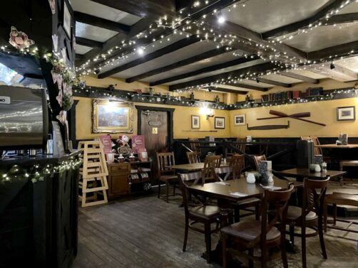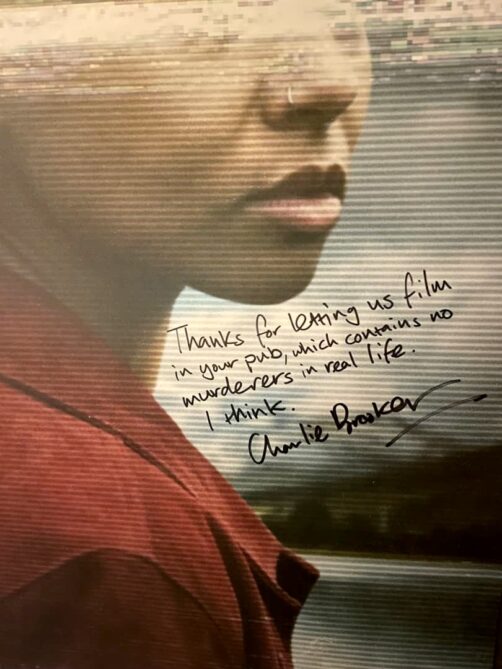 On a cependant évidemment été boire un verre au pub de la Village Inn le soir. Sans vouloir vous spoiler l’épisode, en l’ayant vu, on ne peut s’empêcher de se sentir un peu mal à l’aise (surtout qu’il y avait presque aussi peu de monde que dans la série !). Le pub affiche d’ailleurs fièrement une affiche signée par le casting.