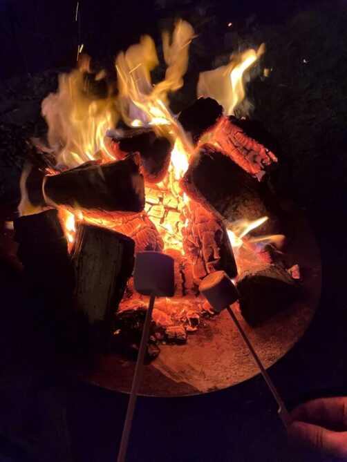 A l’extérieur, chaque pod possède également une agréable petite terrasse et tout le nécessaire pour faire du feu avec des marshmallows ! Par contre, il faut prévoir un petit sac pour la nuit car le parking est assez éloigné (il y a des charettes pour transporter ses bagages si besoin).