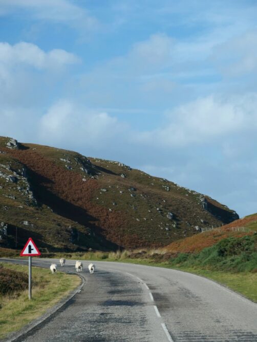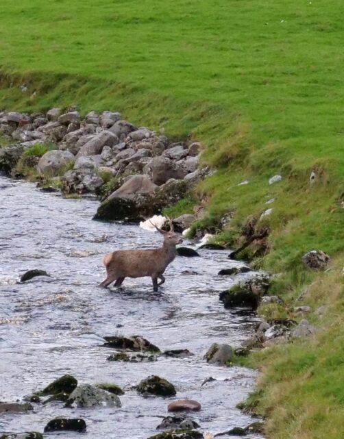 Par contre, si vous ne comptez pas visiter les îles Orkney, je vous recommande de faire comme nous l’avons fait et de couper à travers les terres avant d’arriver tout au nord : cela vous permettra de traverser des paysages tout aussi sauvages, si pas plus. Nous avons traversé du charmant village d’Helmsdale (près d’où nous avons logé la première nuit) jusqu’à Melvich (A897) et c’est là que nous avons vu le plus d’animaux, notamment un cerf qui était en train de faire la cour à une biche ! Nous les avons observés longuement, c’était incroyable. Globalement, il faut donc prévoir large pour les temps de transport, car les routes sont étroites et que vous aurez beaucoup de « distractions » de la sorte !