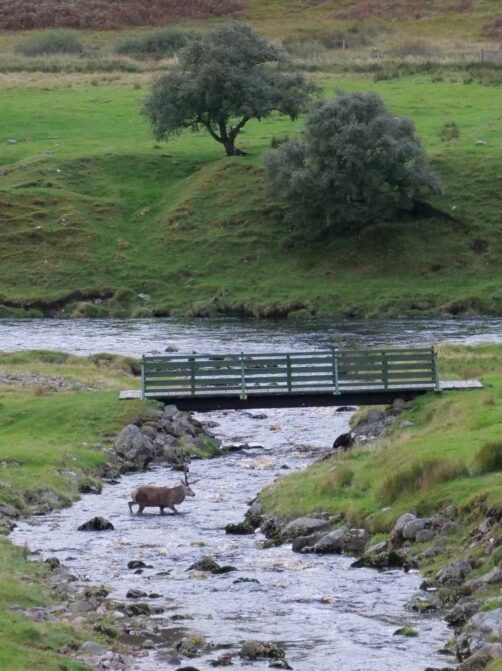 Pour relier Helmsdale à Melvin, nous avons donc pris un « raccourci » traversant les terres : nous étions seuls sur cette petite route pourtant très scénique. C’est après quelques minutes à peine que nous sommes tombé sur le cerf faisant la cour à la biche (qui n’avait pas l’air très partante !).