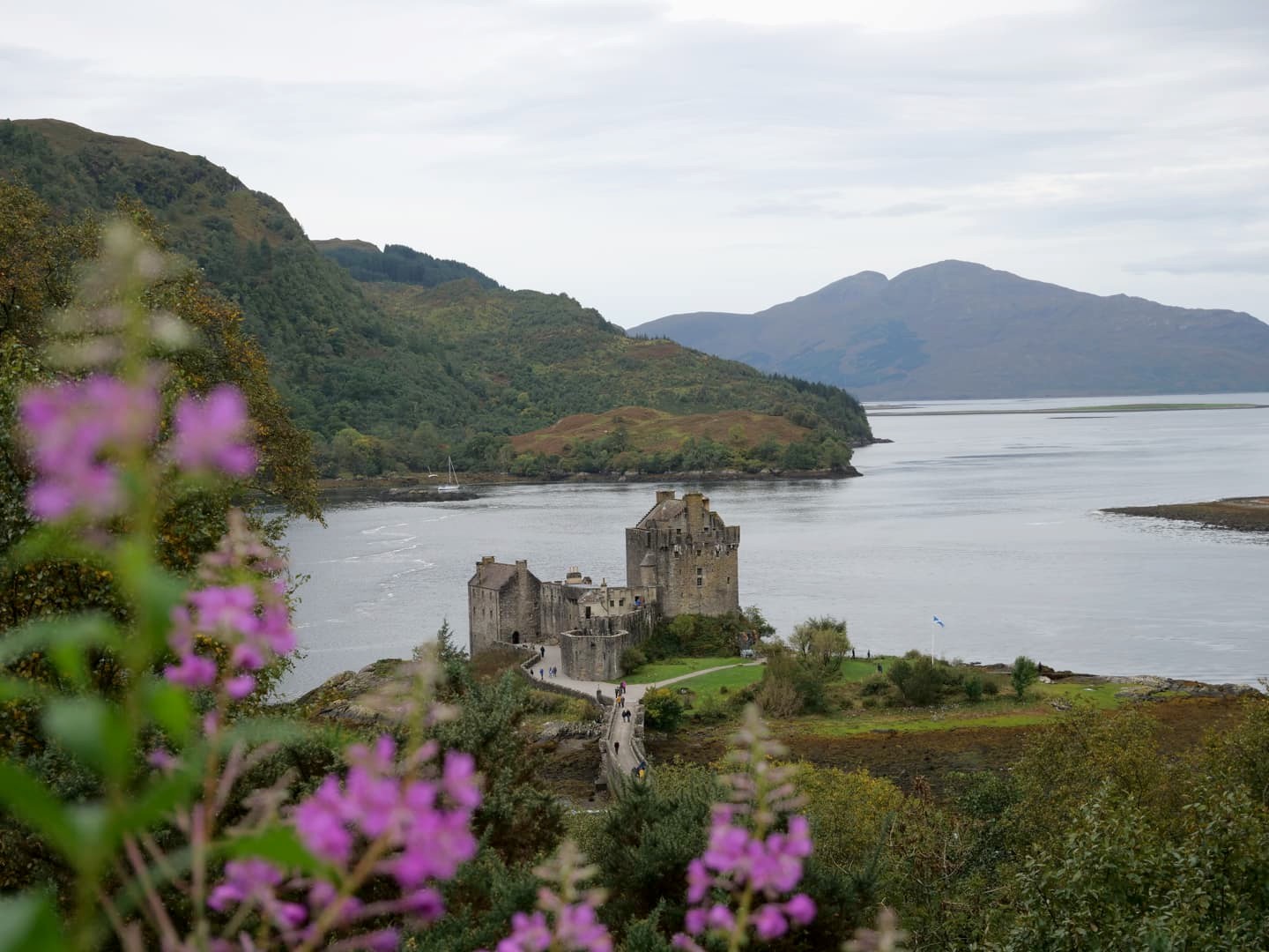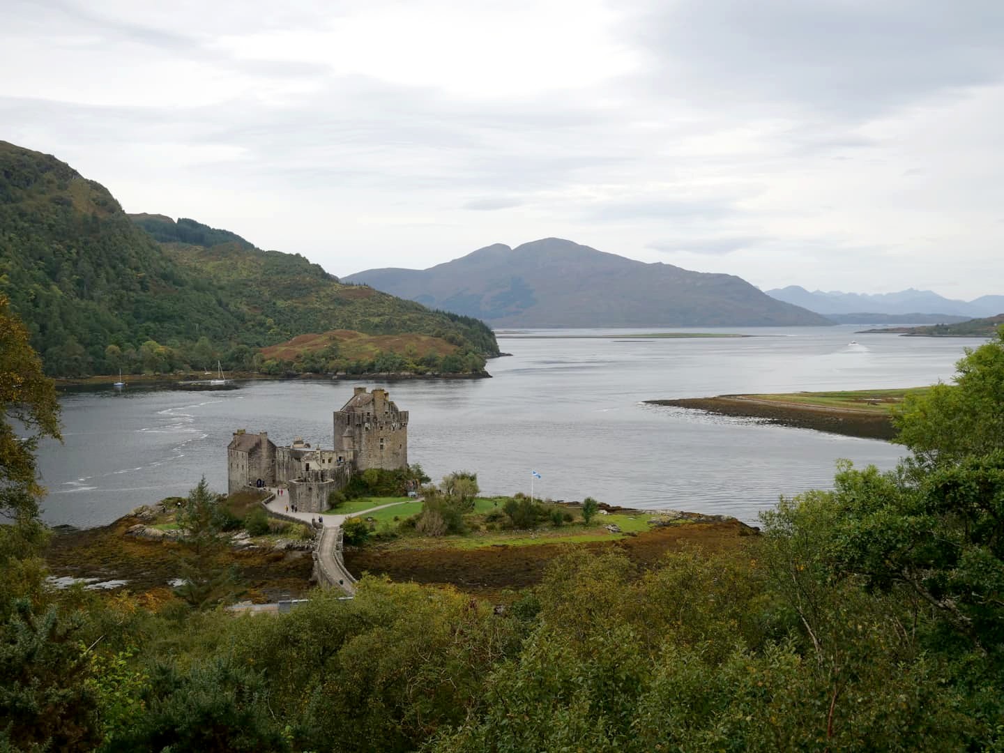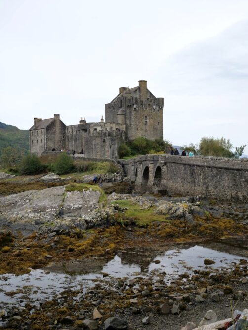 Notre dernier arrêt sur la North Coast 500 était aussi le plus connu ! En effet, le Eilean Donan Castle est le château écossais le plus visité après le Château d’Edimbourg. Et si ce château est si connu, c’est qu’il se situe dans un cadre très scénique, mais aussi car il est apparu dans de nombreux films, dont James Bond (« The World is Not Enough ») et Highlander. L’endroit est très touristique, et encore plus lorsque c’est la marée haute (lorsque le château est isolé par l’eau). Nous l’avons visité à marée basse et c’était tout de même très chouette (et nous le verrons finalement à marée haute au retour de l’île de Skye).