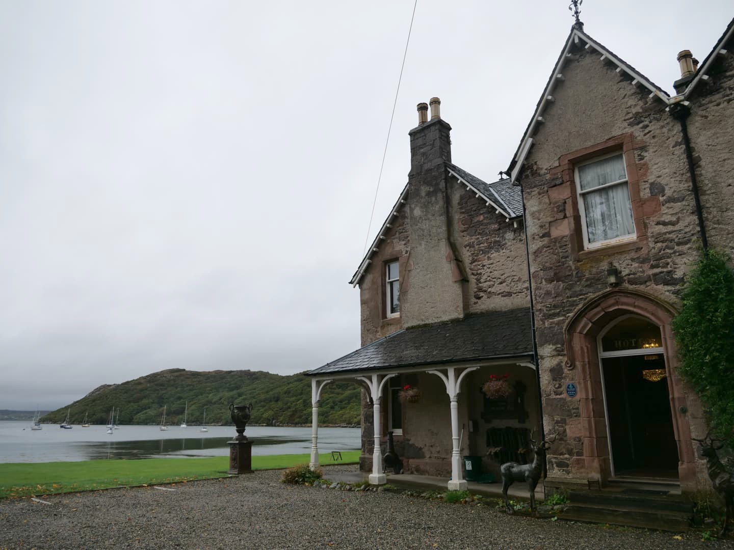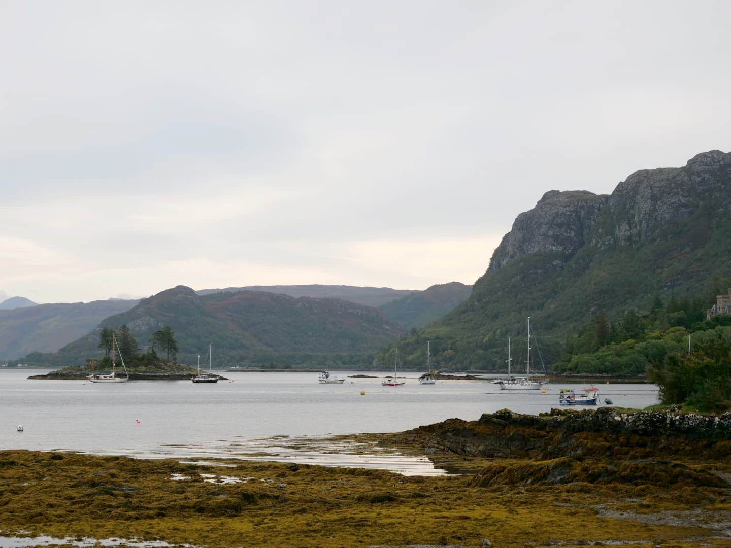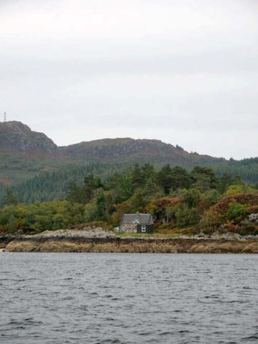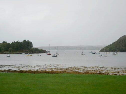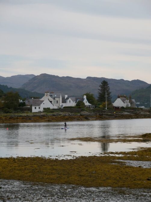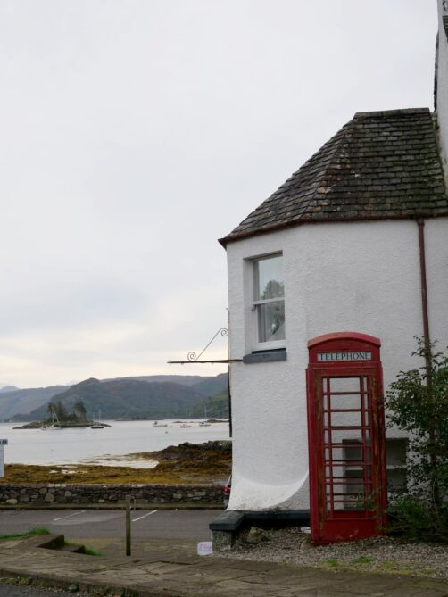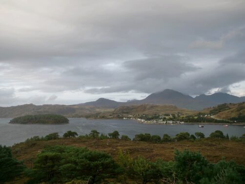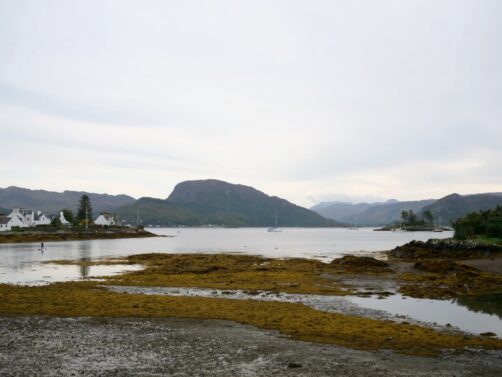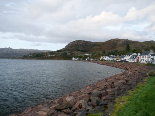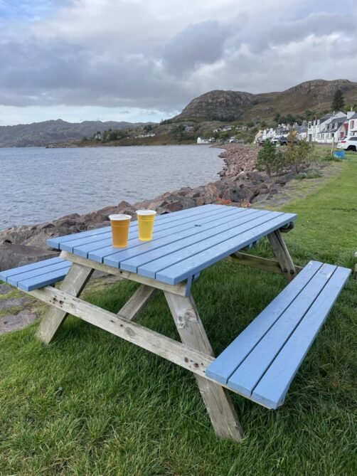 Nous faisons un arrêt dans un petit village de carte postale, Shieldaig, pour boire un verre en terrasse de leur pub, au bord de l’eau. Il y a aussi une chouette balade à faire, mais la météo était un peu trop capricieuse.