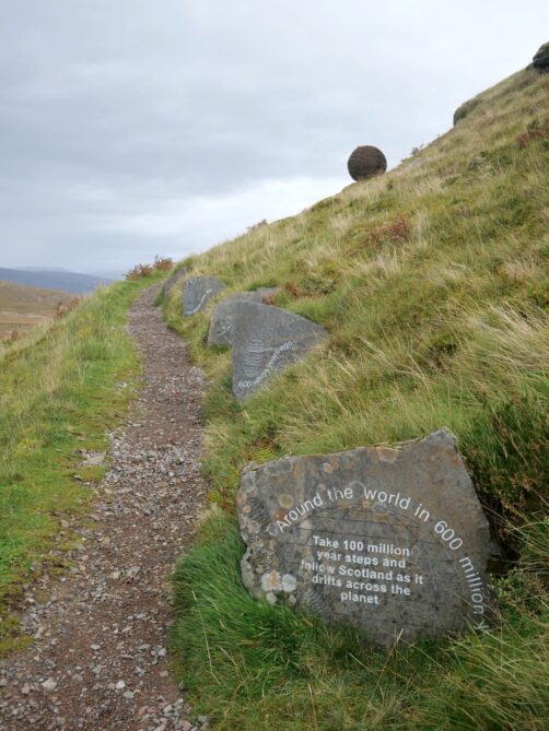 De retour sur la route North Coast 500, notre arrêt suivant était la Knockan Crag National Nature Reserve. Il s’agit d’un site important pour la géologie, puisque c’est le premier endroit où l’on a identifié un chevauchement tectonique (des roches anciennes qui reposent au dessus de roches plus jeunes). Avant cela, les géologues considéraient que les roches les plus anciennes étaient toujours en bas.