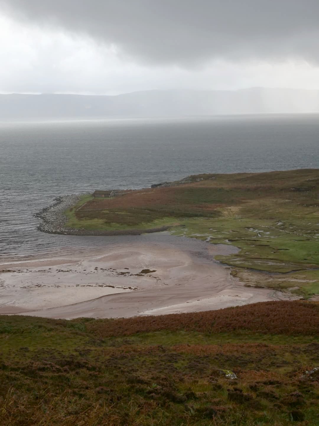 Pour rejoindre notre hébergement du jour à Applecross, nous nous enfonceons à nouveau dans une petite route secondaire. L’atmosphère devient très « moody », mais les paysages restent splendides. Nous faisons un bref arrêt à Applecross Sands.