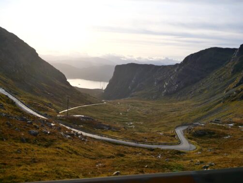 Mais c’est la deuxième partie de cette petite route secondaire qui est surtout connue : en effet la route du Applecross Pass (ou Bealach na Ba), qui culmine à 625 mètres d’altitude, est considérée comme l’une des plus belles routes d’Ecosse, et les photos ne rendent vraiment pas justice à cet endroit ! On se croirait vraiment en Norvège ou en Islande, mais il n’y a même pas besoin de prendre l’avion pour venir ici ! Si c’est bien dégagé, on peut même voir jusqu’à l’île de Skye, et même jusqu’aux Outer Hebrides.