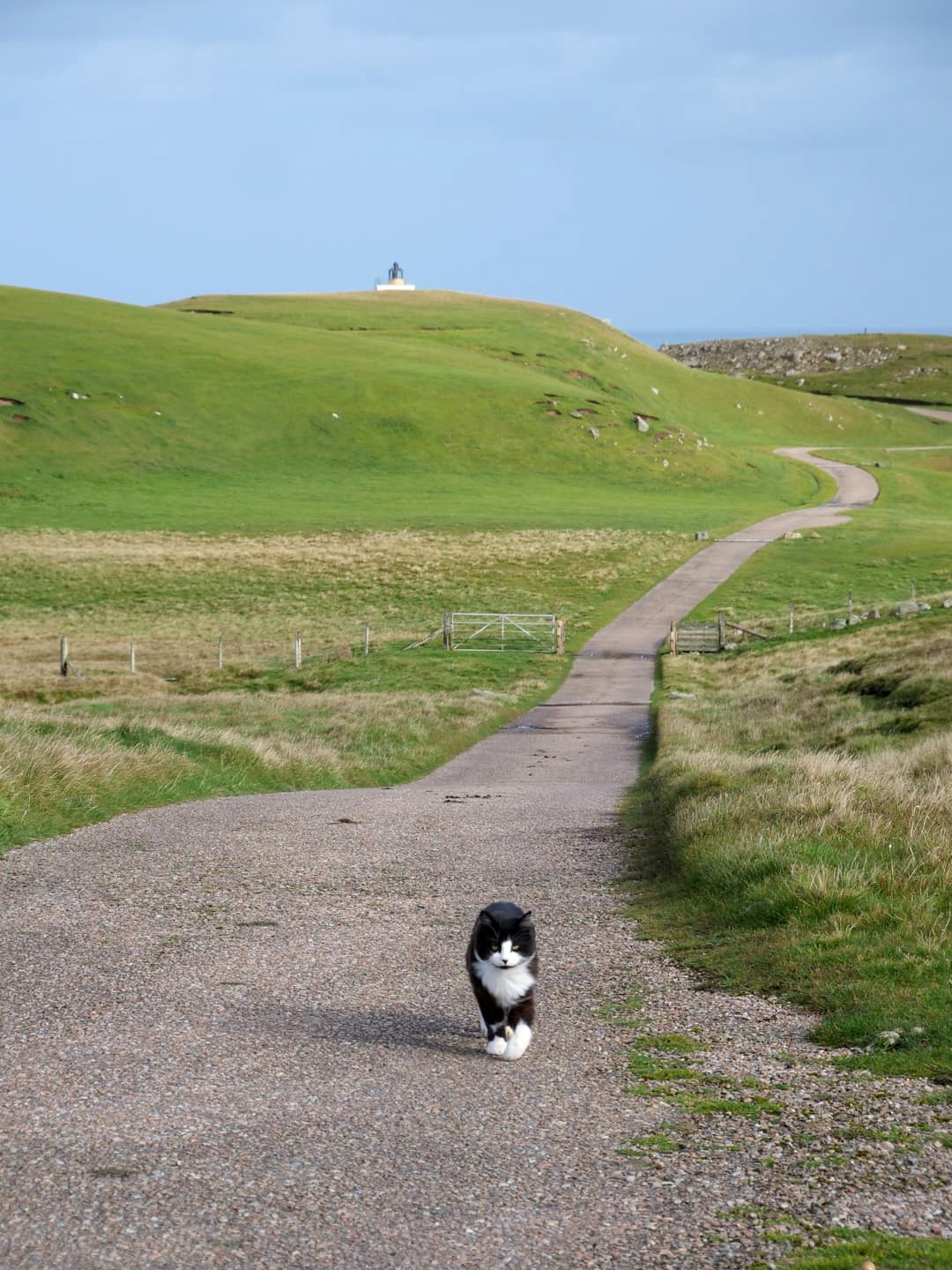 Direction ensuite le joli phare de Strathy Point, auquel on accède uniquement à pied (petite randonnée très facile). Nous y avons eu comme guide… un chat ! Il a fait l’aller-retour avec nous : je vous recommande d’y aller ne serait-ce que pour lui tenir compagnie vu qu’il a l’air d’adorer ça ! En plus, il nous a même dirigé vers la plus belle vue que l’on aurait peut-être raté sans lui… Si vous le voyez, faites-lui une caresse de ma part !
