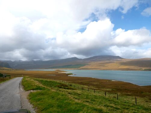 N.B. Si vous ne voulez pas faire le détour par Lochinver, une alternative : randonner jusqu’au Loch na Gainmhich, un loch avec une chute d’eau, assez difficile d’accès mais proche de la route principale.