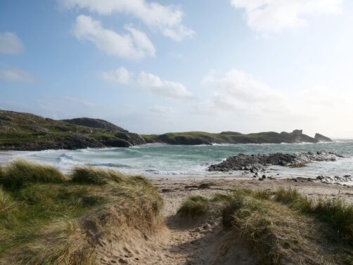 Nous avons ensuite quitté la route principale pour faire une petite boucle secondaire en direction de notre hébergement pour la nuit, situé à Lochinver. Les paysages sont toujours à couper le souffle, et il y a plusieurs superbes plages à découvrir en chemin. Nous nous sommes arrêtés à la Clachtoll Beach, et à la Achmelvich Beach (où nous avons mangé notre repas sur la plage !). Avec un peu plus de temps, vous pouvez aussi faire une randonnée jusqu’au Old Man of Stoer (à ne pas confondre avec le Old Man of Storr sur l’île de Skye).