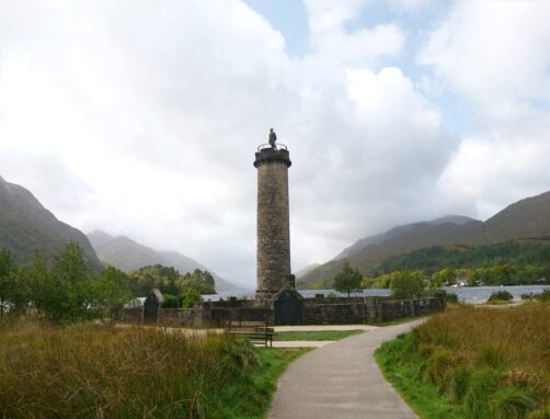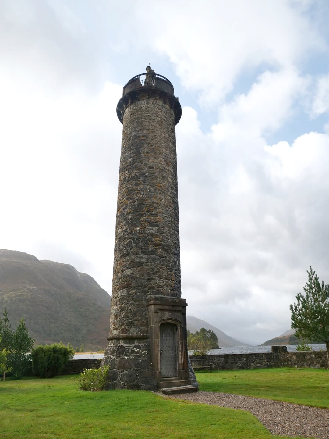 Si vous arrivez trop tôt, une fois garés, vous pouvez prendre la direction du Loch Shiel pour aller voir le Glenfinnan Monument. C’est une petite balade rapide, qui permet de voir ce monument commémorant le soulèvement jacobite. La tour était fermée lors de mon voyage mais il est parfois possible d’y monter pour profiter de la vue.