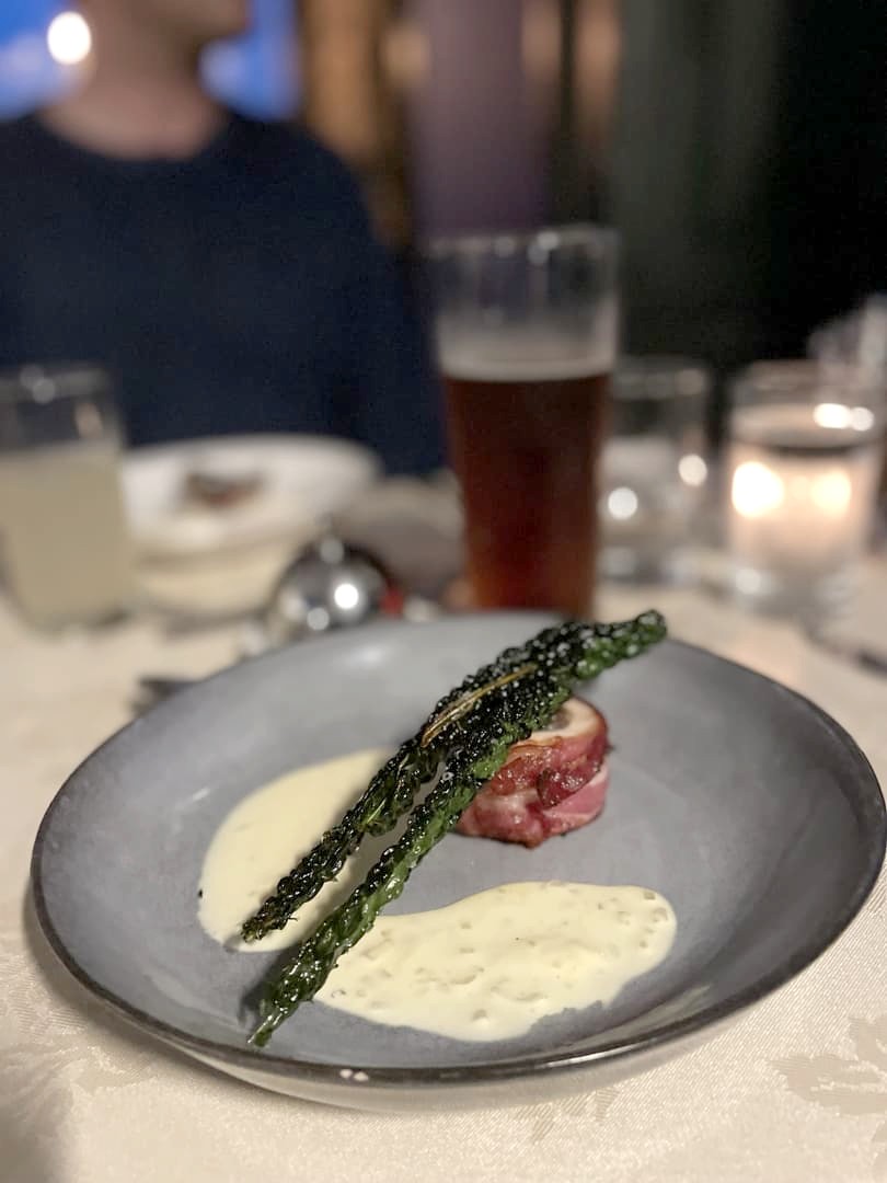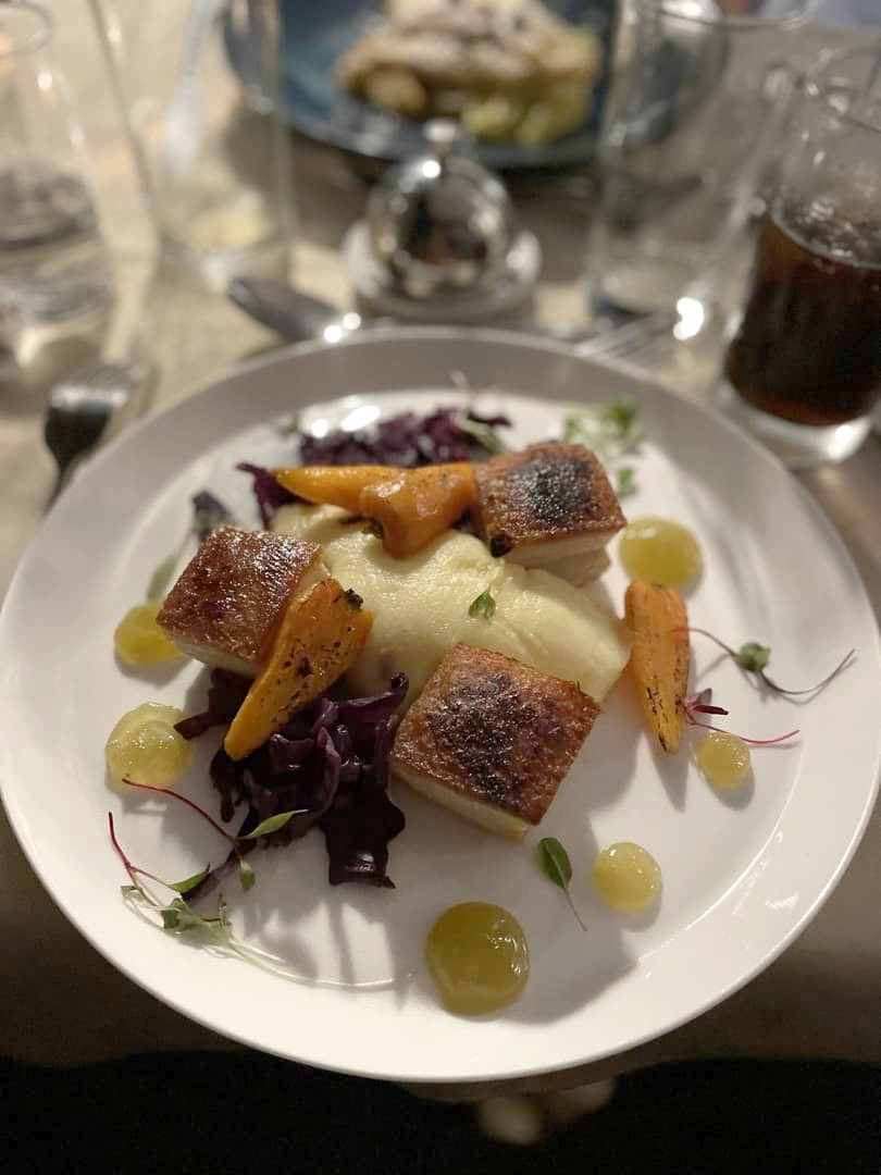Comme c’est loin de tout, nous avions réservé le repas du soir, qui se prend au rez-de-chaussée. Le repas en cinq services nous a beaucoup surpris, car on ne s’attend pas à découvrir une cuisine semi-gastronomique dans un cadre si reculé ! Le menu était excellent et met bien en avant les produits locaux. Ce n’était pas donné, mais c’était aussi très copieux.