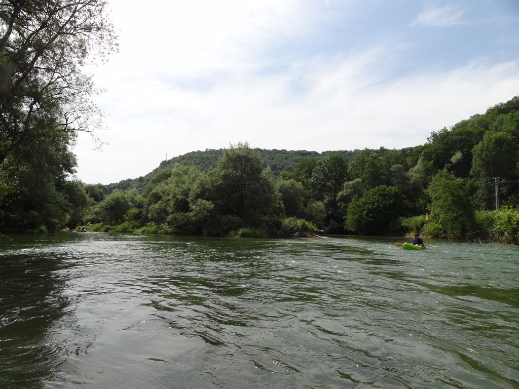 La descente est un peu plus « acrobatique » que la descente de la Lesse, il y a toute une succession de rapides et barrages à passer sur le trajet. Le point positif, c’est qu’il y a plus de courant, et qu’on avance assez vite.