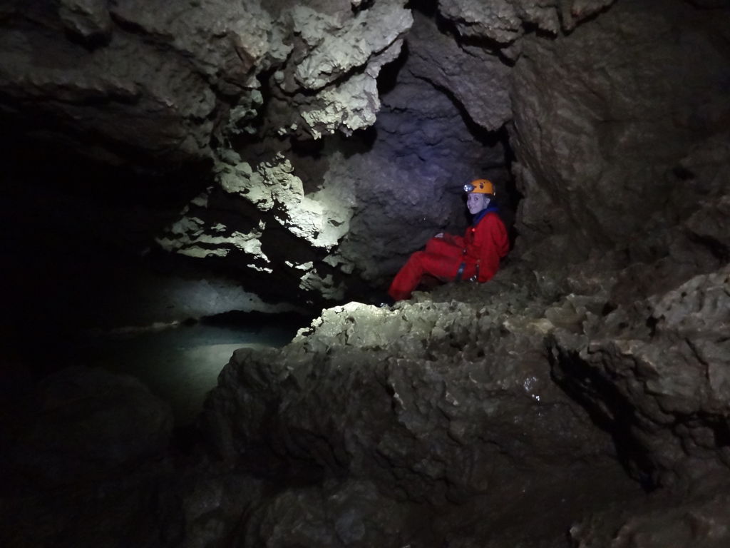 C’est donc accompagné d’un pro que Fred, Feodora (qui nous rejoignait pour l’occasion) et moi-même nous sommes aventurés dans cette grotte de l’âge du Bronze… au sol très glissant !
