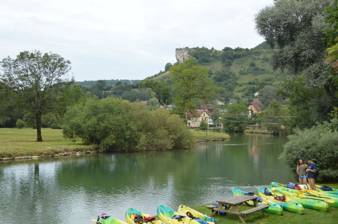 Différents parcours sont possibles au départ de la base, et le transport en navette est inclus dans toute location. Avec guide (heureusement !), nous avons parcouru le trajet Vuillfans – Ornans dans un canoë duo.