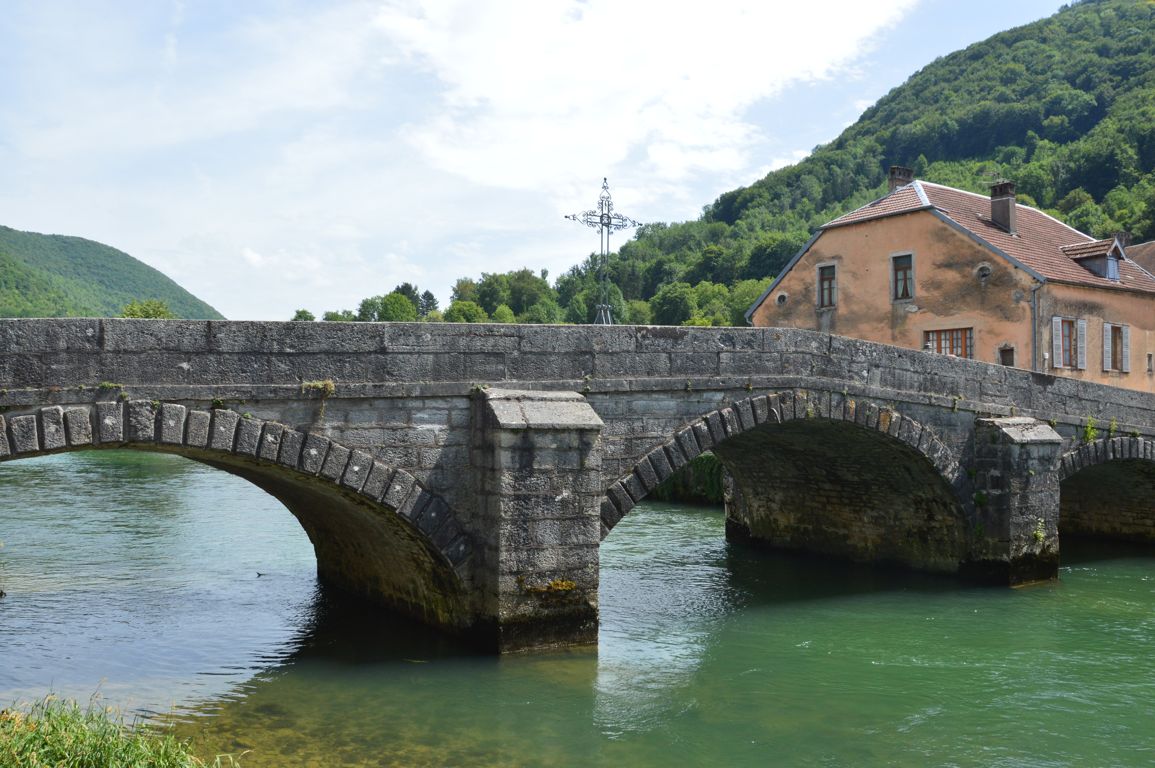 Comme beaucoup de villages dans les environs, Vuillafans est à l’origine un village viticole, même si la viticulture a aujourd’hui cessé dans la région. Son Eglise du 15ème siècle abrite un retable classé (que nous ne verrons pas, l’église étant fermée…) et un pont à arches du 17ème siècle.