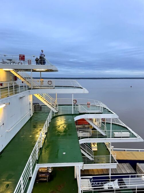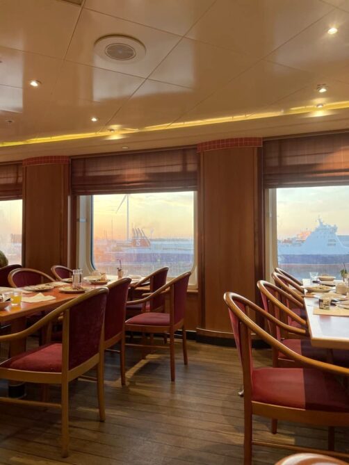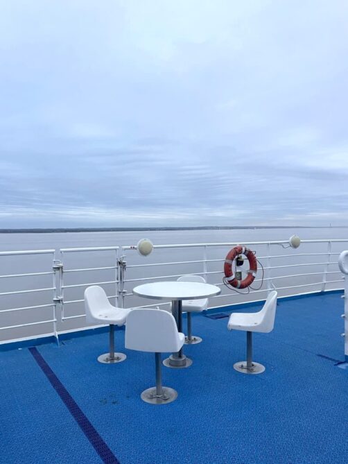 La taille du ferry signifie qu’on ne sent pas beaucoup le ferry bouger, excepté en cas de vraiment forte tempête. Je me rappelle que ça avait été le cas lorsque j’étais ado : j’avais eu le mal de terre pendant deux jours après ça tellement c’était fort ! Heureusement, cette fois-ci, je n’ai rien senti et j’ai dormi comme un bébé à la fois à l’aller et au retour.