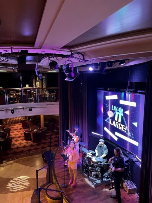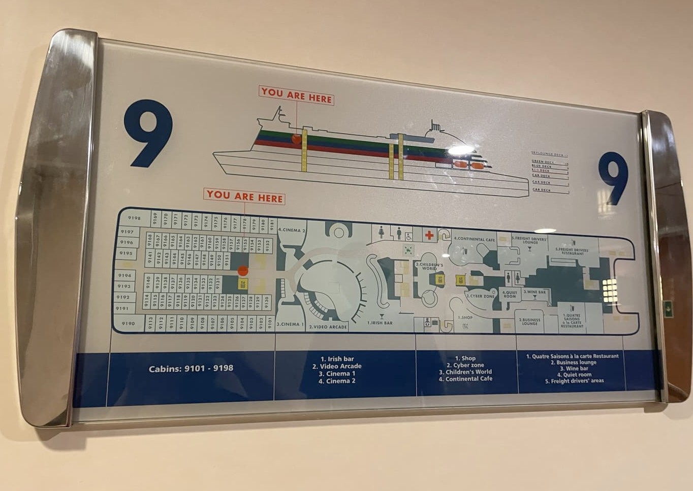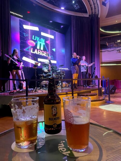 Comme je vous le disais, au final nous ne sommes vraiment restés dans notre cabine que pour dormir, car il y a de quoi faire sur le ferry ! Ça a vraiment des airs de mini croisière, avec plusieurs restaurants, bars, espace jeux et casino, salle de cinéma, et ma partie préférée : le « live entertainment », soit des animations, quiz et groupes de musique live, tout au long de la soirée ! Les « pub quizz » se sont via une app, que vous pouvez télécharger sur votre téléphone même sans réseau. Un peu difficile de gagner sans être anglo-saxon mais ça reste fun ! Les groupes sont aussi très British, un peu kitsch parfois, mais j’adore l’ambiance !