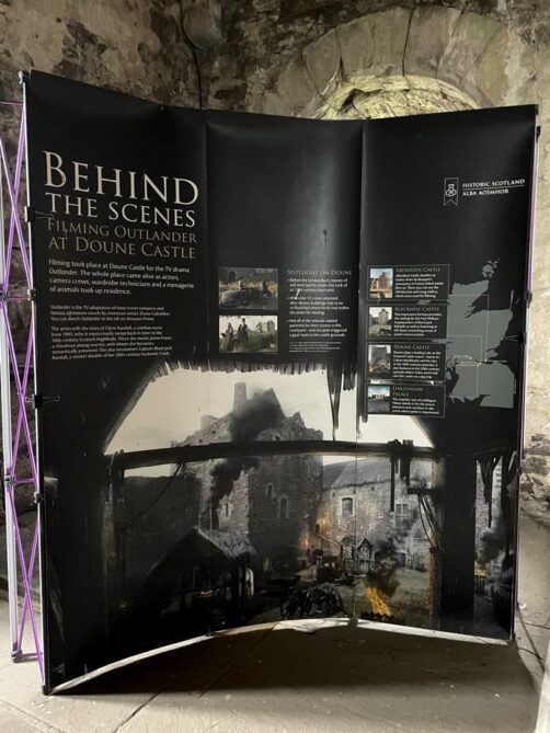 Parmi les lieux de tournage Outlander, le Doune Castle (à visiter avec le Explorer Pass) est probablement l’un des plus fréquentés. Il faut dire qu’il est aussi apparu dans un film des Monty Python et dans la série Game of Thrones. Dans Outlander, il représente le Castle Leoch, le château du clan MacKenzie. Ici aussi, vous trouverez un panneau explicatif « Behind the Scenes » pour découvrir les secrets de tournage de la série, ainsi qu’une boutique bien équipée en goodies Outlander !