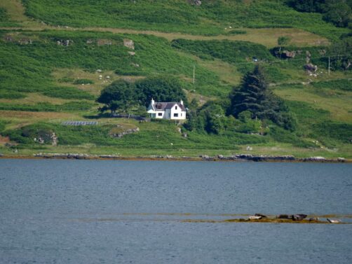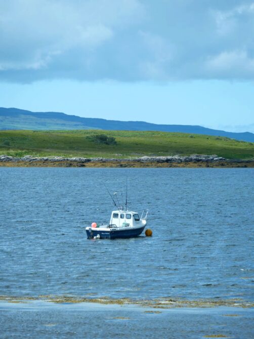 Si vous vous baladez dans la jolie ville de Tobermory, je vous conseille de passer au magasin du Hebridean Whale and Dolphin Trust, l’association qui s’occupe de la conservation des animaux marins au large des îles Hébrides. Ils ont quelques chouettes souvenirs, et vous pourrez aussi y lire la liste des dernières espèces observées les jours précédents, avec la localisation (car vous pouvez tout à fait tenter votre chance depuis la terre ferme, sans forcément participer à une croisière). En juillet, la liste des observations comprenait plusieurs espèces de dauphins, des marsouins, et un petit rorqual (« Minke whale »). En fonction de la période de l’année et avec plus de chances, les observations de plus grandes baleines ou de requins sont également possibles.