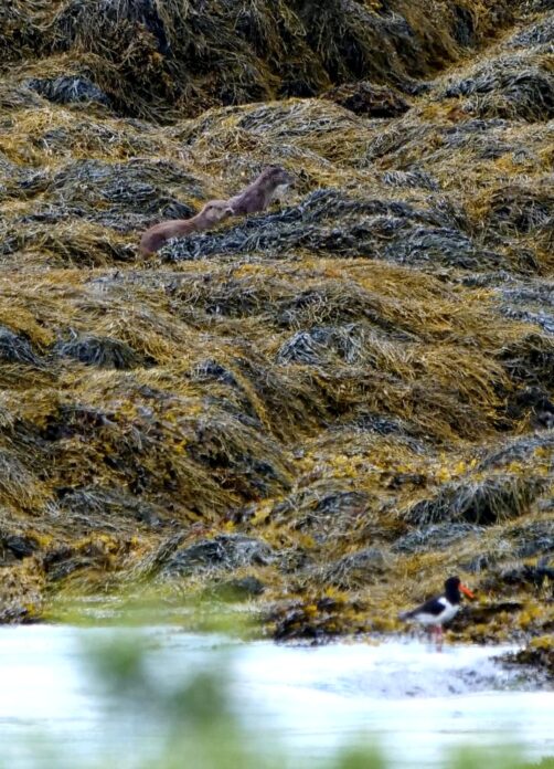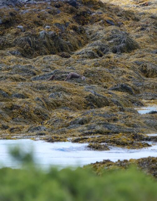 Pour les loutres, pour avoir tenté de les observer par moi-même dans un endroit tout aussi réputé dans les îles Shetland, je peux vous dire que c’est très difficile. Surtout quand leur couleur se fond au milieu de celles des algues. Il faut avoir l’œil bien aiguisé et je ne les aurais jamais vues, même en étant juste devant, sans l’aide de notre guide !