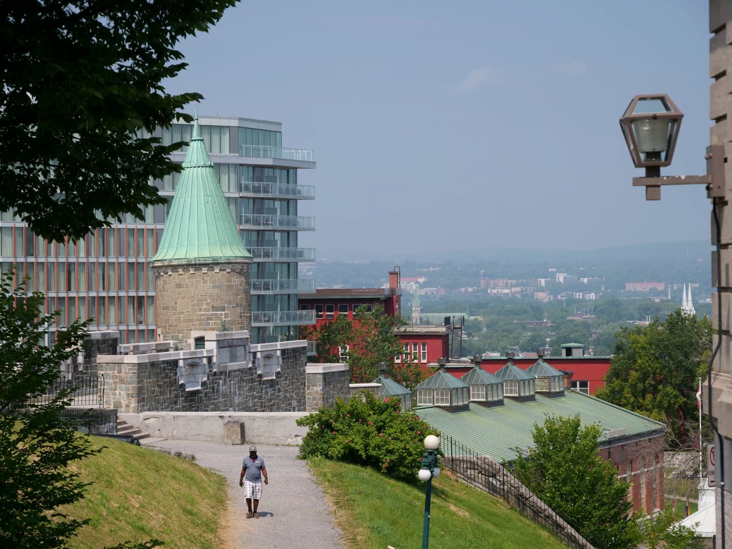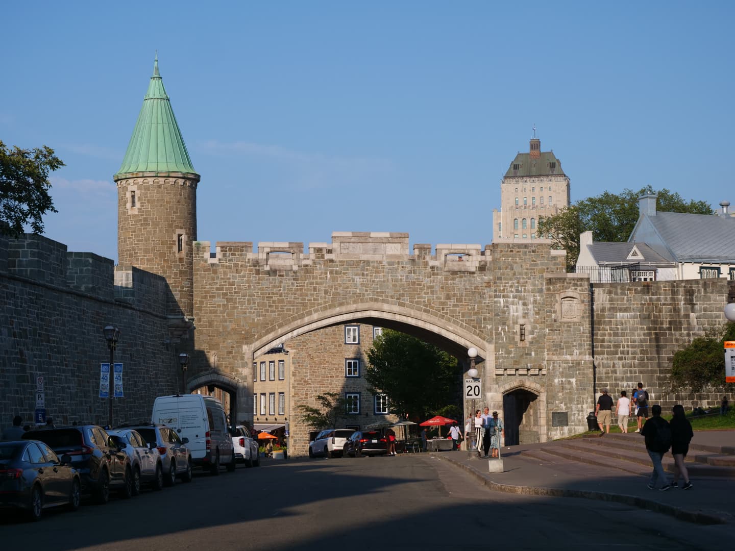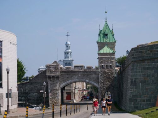 En continuant à longer les remparts au dessus des Plaines d’Abraham, vous pouvez traverser la Porte Saint-Louis par son sommet, et poursuivre jusqu’à la Porte Saint-Jean ou encore plus bas pour profiter d’autres belles vues sur la ville depuis le haut des remparts.