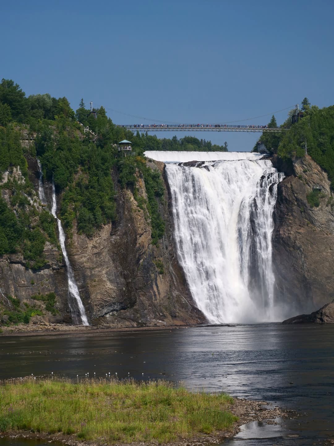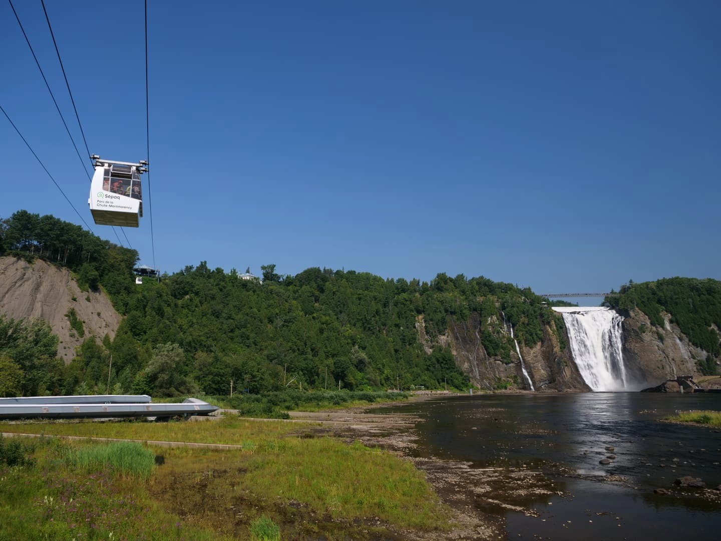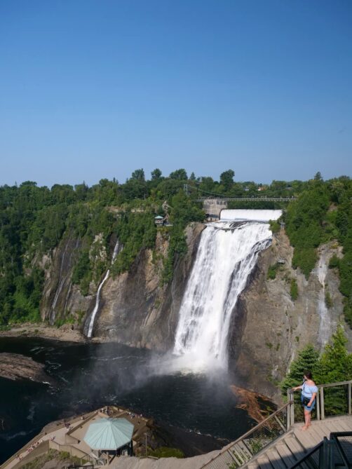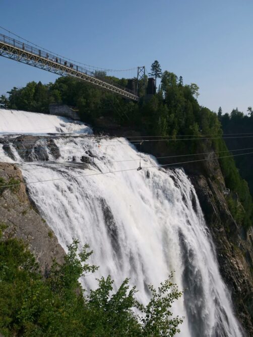 Située à seulement 15 minutes de route du Vieux-Québec, la Chute Montmorency est la chute d’eau la plus proche de la ville, et aussi la plus touristique. Il faut dire qu’avec peu d’effort pour y arriver, on en prend pourtant directement plein les yeux ! Cette chute haute de 83 mètres se trouve au coeur du Parc de la Chute-Montmorency (dont l’accès est payant). Vous y trouverez deux zones de parking, situées en haut et en bas du téléphérique qui permet d’éviter une longue remontée si vous voulez faire une belle boucle autour des chutes d’eau.
