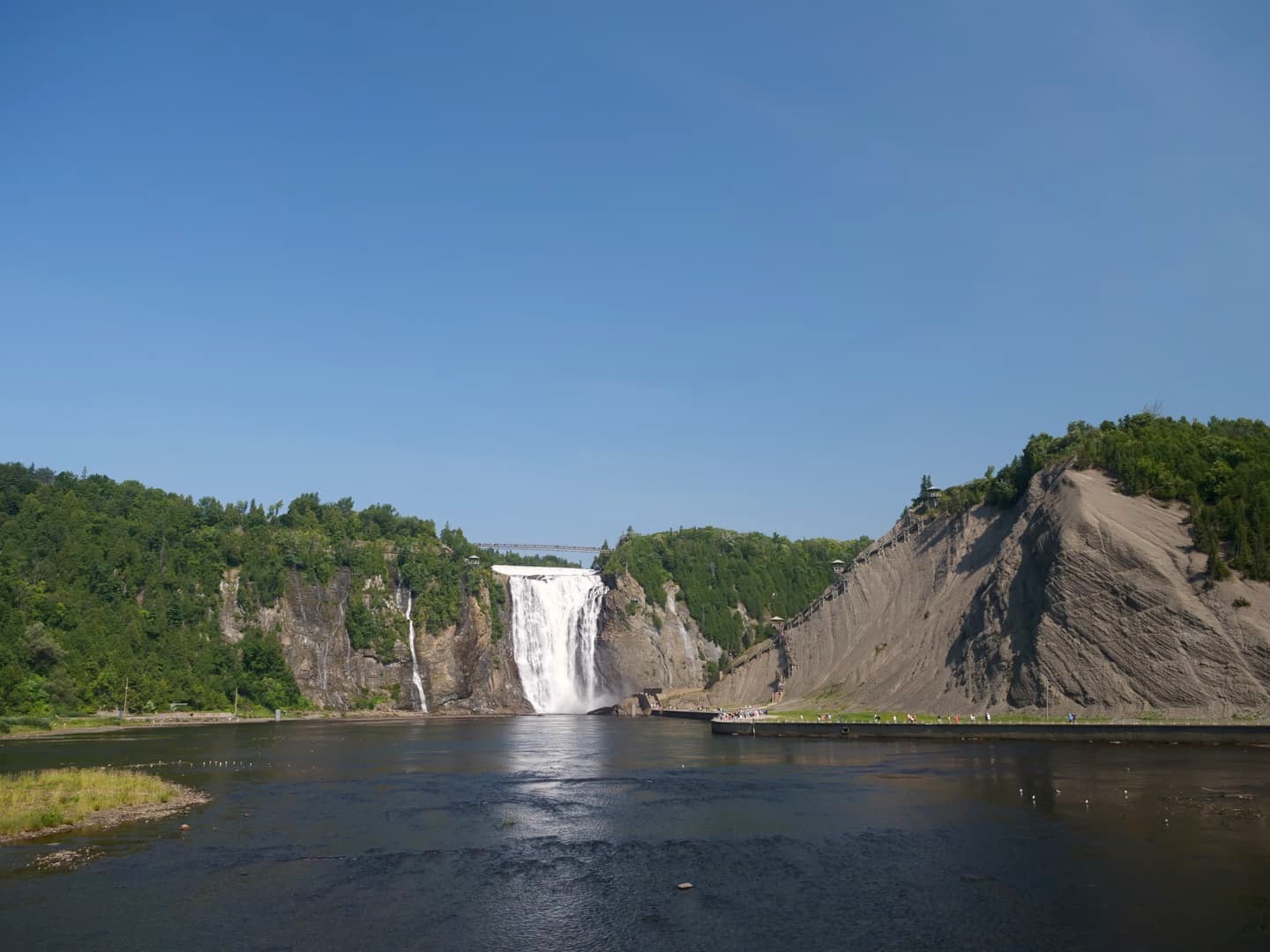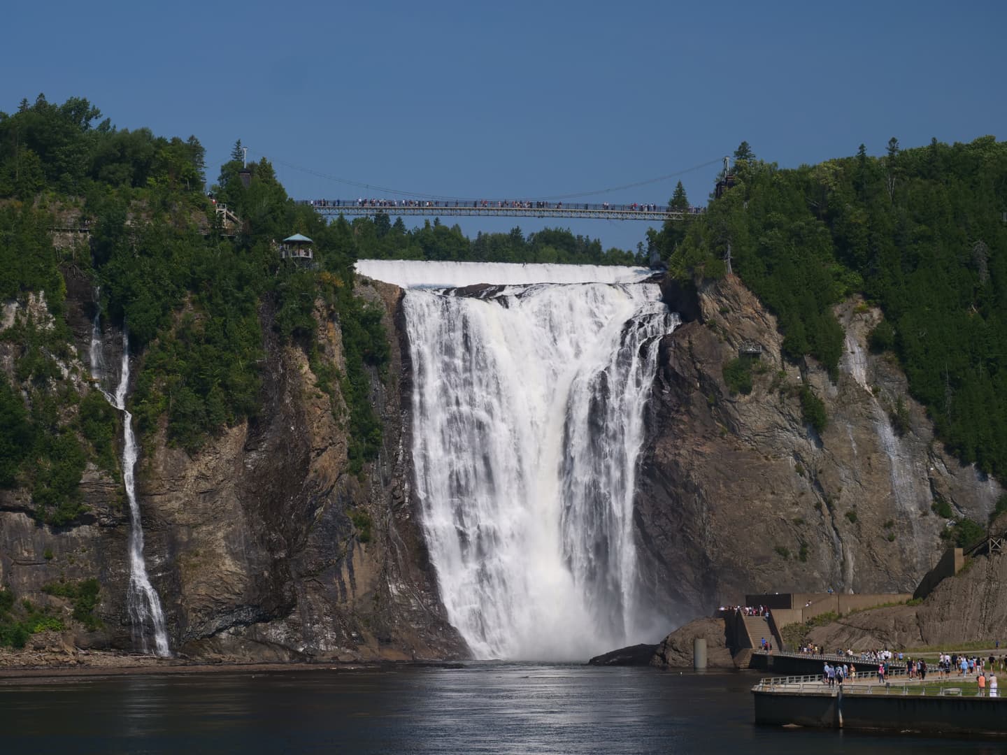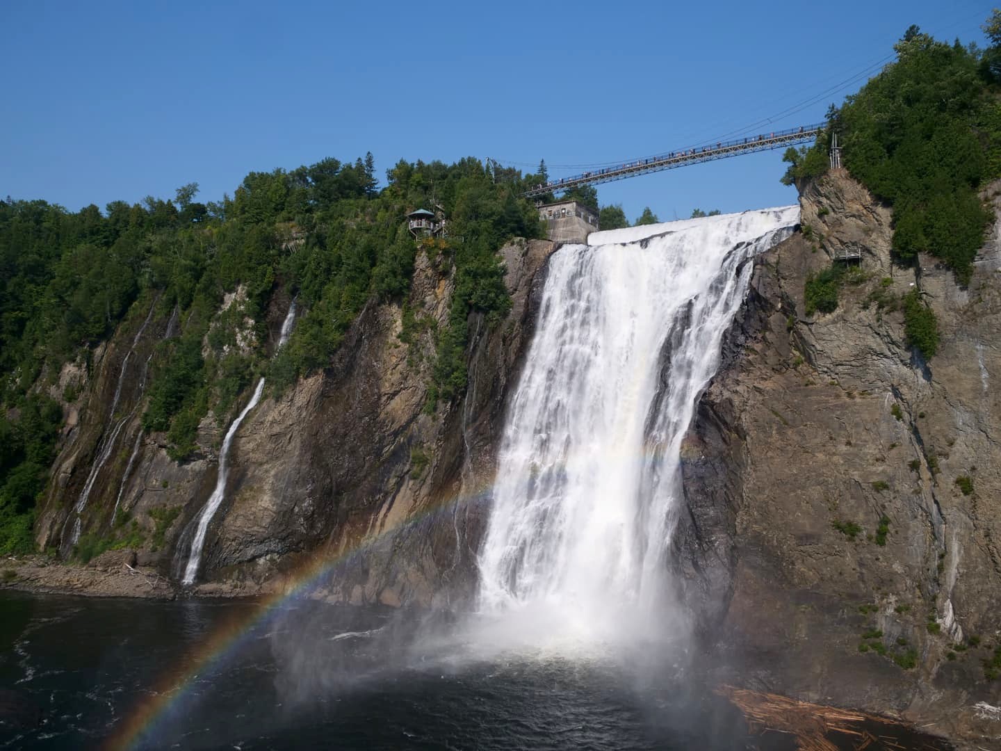 Située à seulement 15 minutes de route du Vieux-Québec, la Chute Montmorency est la chute d’eau la plus proche de la ville, et aussi la plus touristique. Il faut dire qu’avec peu d’effort pour y arriver, on en prend pourtant directement plein les yeux ! Cette chute haute de 83 mètres se trouve au coeur du Parc de la Chute-Montmorency (dont l’accès est payant). Vous y trouverez deux zones de parking, situées en haut et en bas du téléphérique qui permet d’éviter une longue remontée si vous voulez faire une belle boucle autour des chutes d’eau.