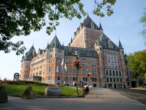 Surplombant le fleuve Saint-Laurent, le Château Frontenac est l’hôtel iconique du Vieux-Québec, appartenant au groupe Fairmont. Plus récent que l’on peut le croire, cet hôtel est devenu un véritable symbole de la ville, et ce serait même apparemment l’hôtel le plus photographié au monde !